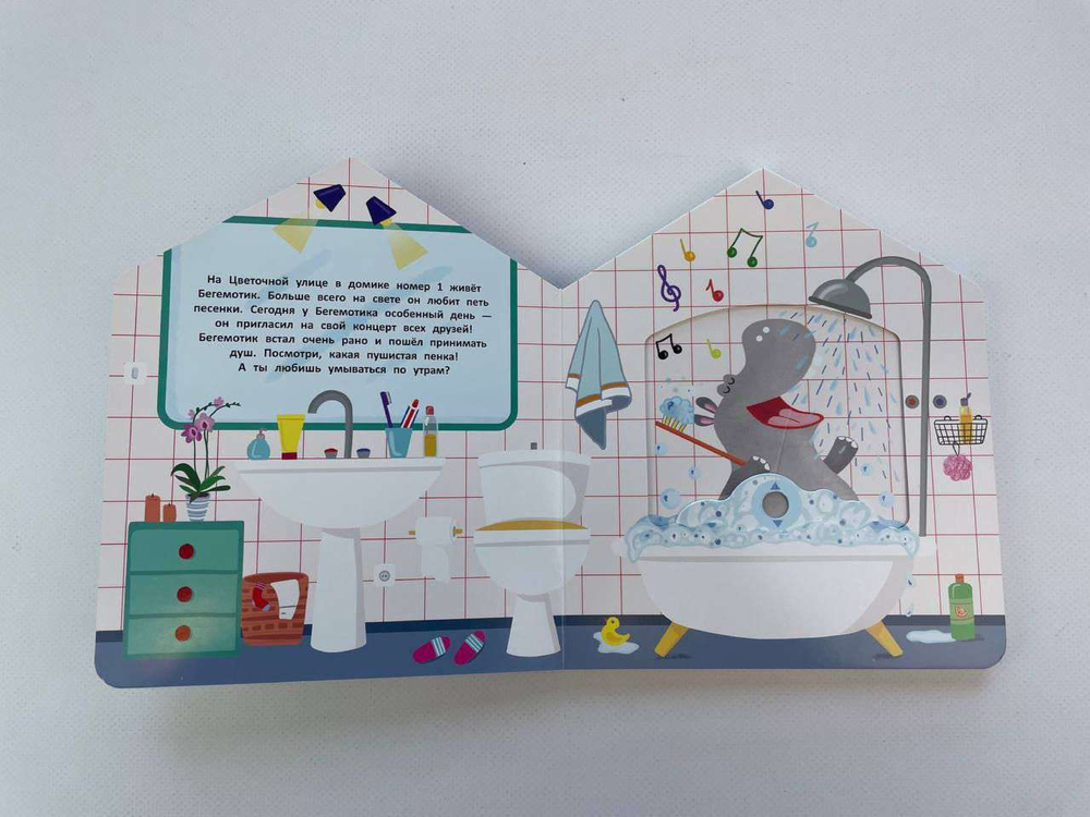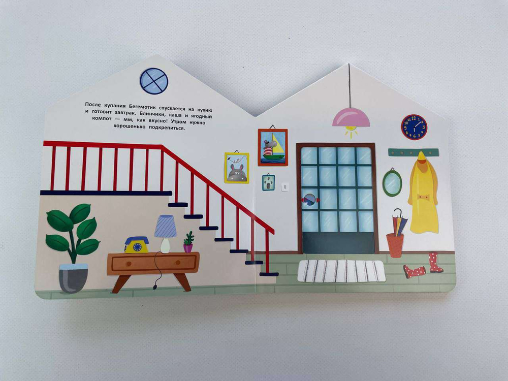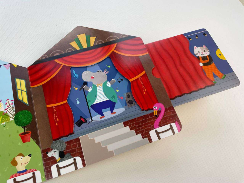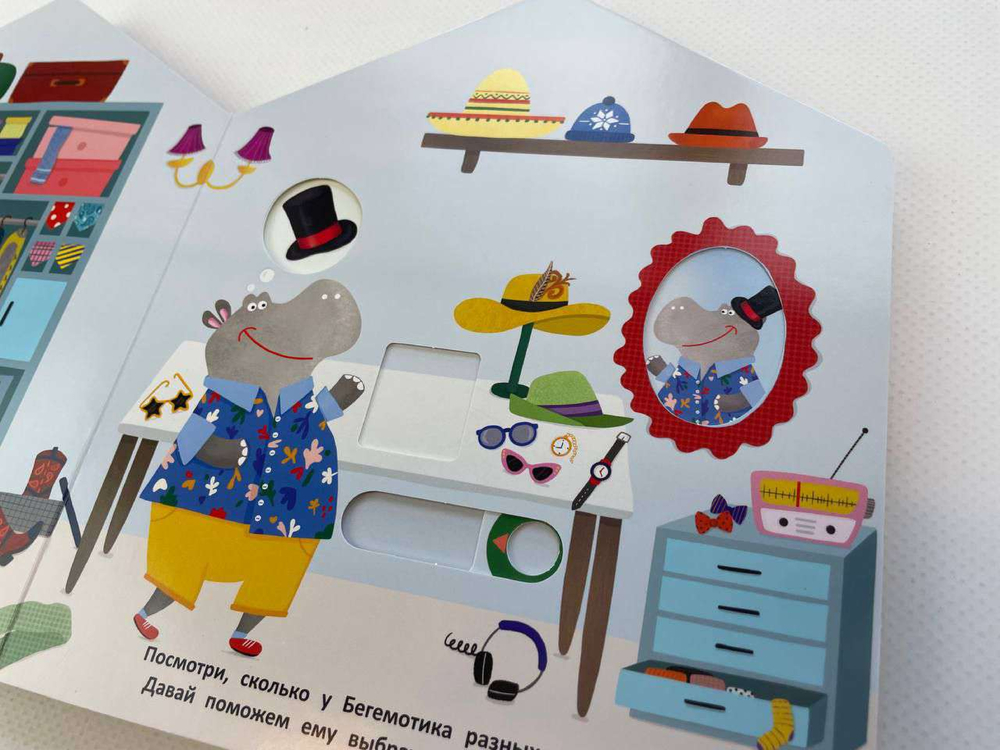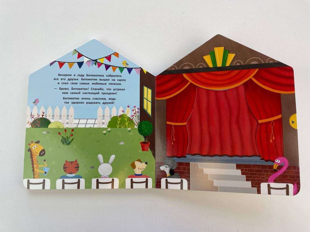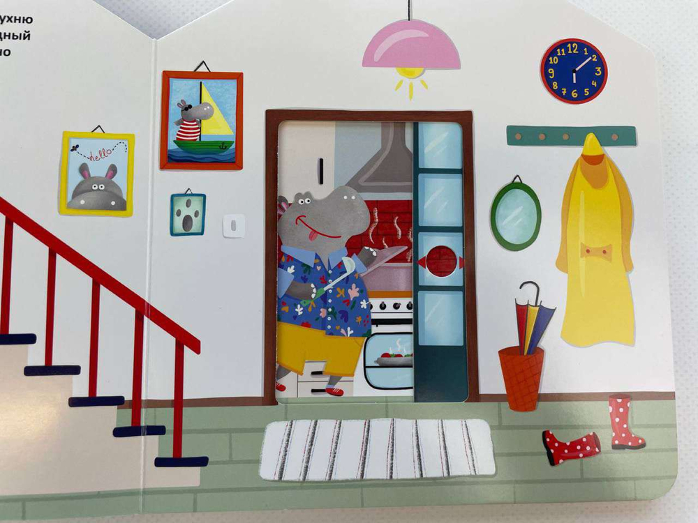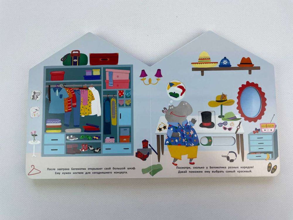 В этой интерактивной книжке-игрушке много сюрпризов: малыш сможет заглянуть в каждую комнату домика и узнать, чем любит заниматься дружелюбный хозяин. А ещё открыть шкафчик, выбрать наряд и позвать друзей на концерт.