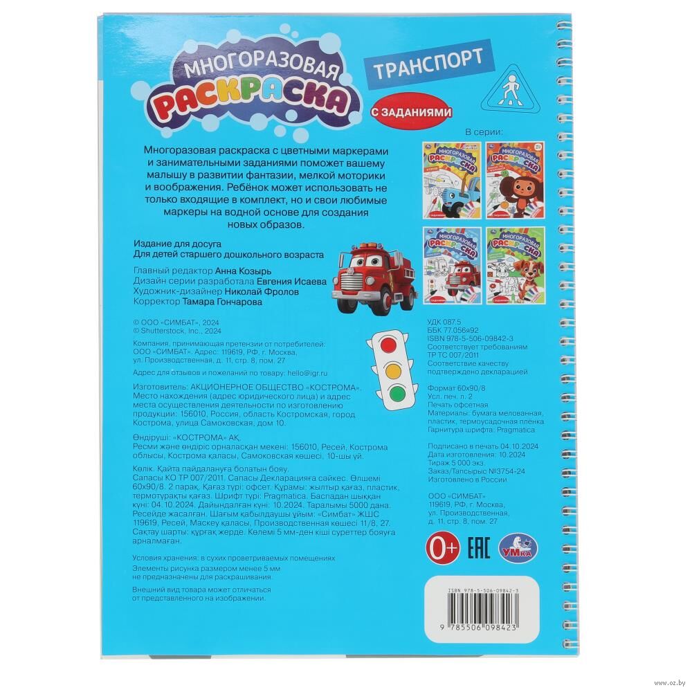 На страницах этой занимательной раскраски ребёнка ждут разнообразные картинки с изображением транспортных средств. Страницы в книжке – волшебные: раскрашиваемые картинки многоразовые, их можно стирать и творить заново! Для этого в комплекте предусмотрено 4 разноцветных маркера, но можно использовать и свои дополнительные цветные маркеры на водной основе. Кроме того, в раскраске представлены увлекательные задания, которые точно не дадут заскучать маленькому любознайке.