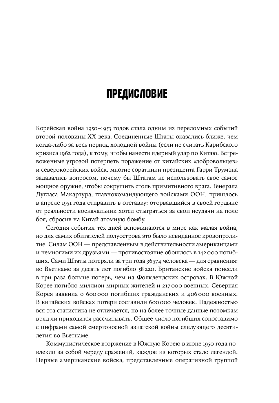 Вторжение коммунистической Северной Кореи в Южную, произошедшее 25 июня 1950 года, обернулось одним из самых кровопролитных противостояний прошлого столетия. Неисчислимая живая сила Севера, поддержанного Китаем, схлестнулась со свирепой огневой мощью Юга, на стороне которого выступили войска ООН. С позиций сегодняшнего дня эта война видится прямой предвестницей Вьетнамского конфликта. Опираясь на свидетельства очевидцев – непосредственных участников боевых действий, – Макс Хейстингс разворачивает перед нами живую панораму Корейской войны.