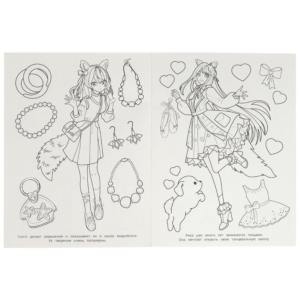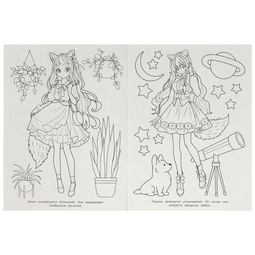 Эта увлекательная раскраска об очаровательных аниме-девочках непременно понравится вашему ребёнку. В ней девочка найдёт интересные картинки с чёткими контурами и сюжетными текстами к ним. Благодаря удобному формату раскраску можно взять с собой в дорогу.