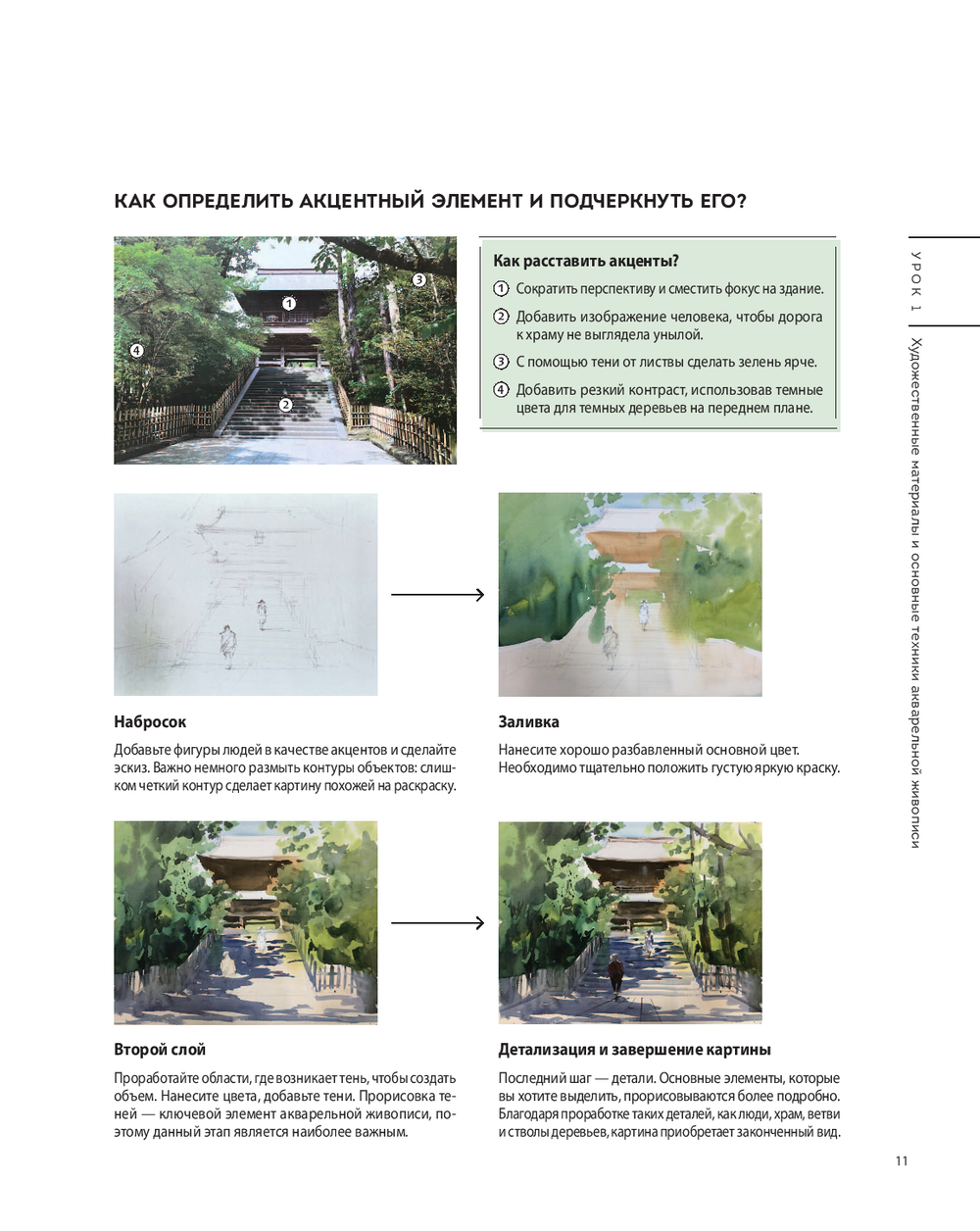 Книга сочетает в себе практическое обучение и подборку референсов для вдохновения: от разбора инструментов до воссоздания своих первых городских изображений на бумаге: базовые приемы, пошаговые уроки, разнообразие примеров (городские улочки, парки, железная дорога и т.д.), советы по выбору инструментов, авторские секреты по работе с акварелью и много другое!