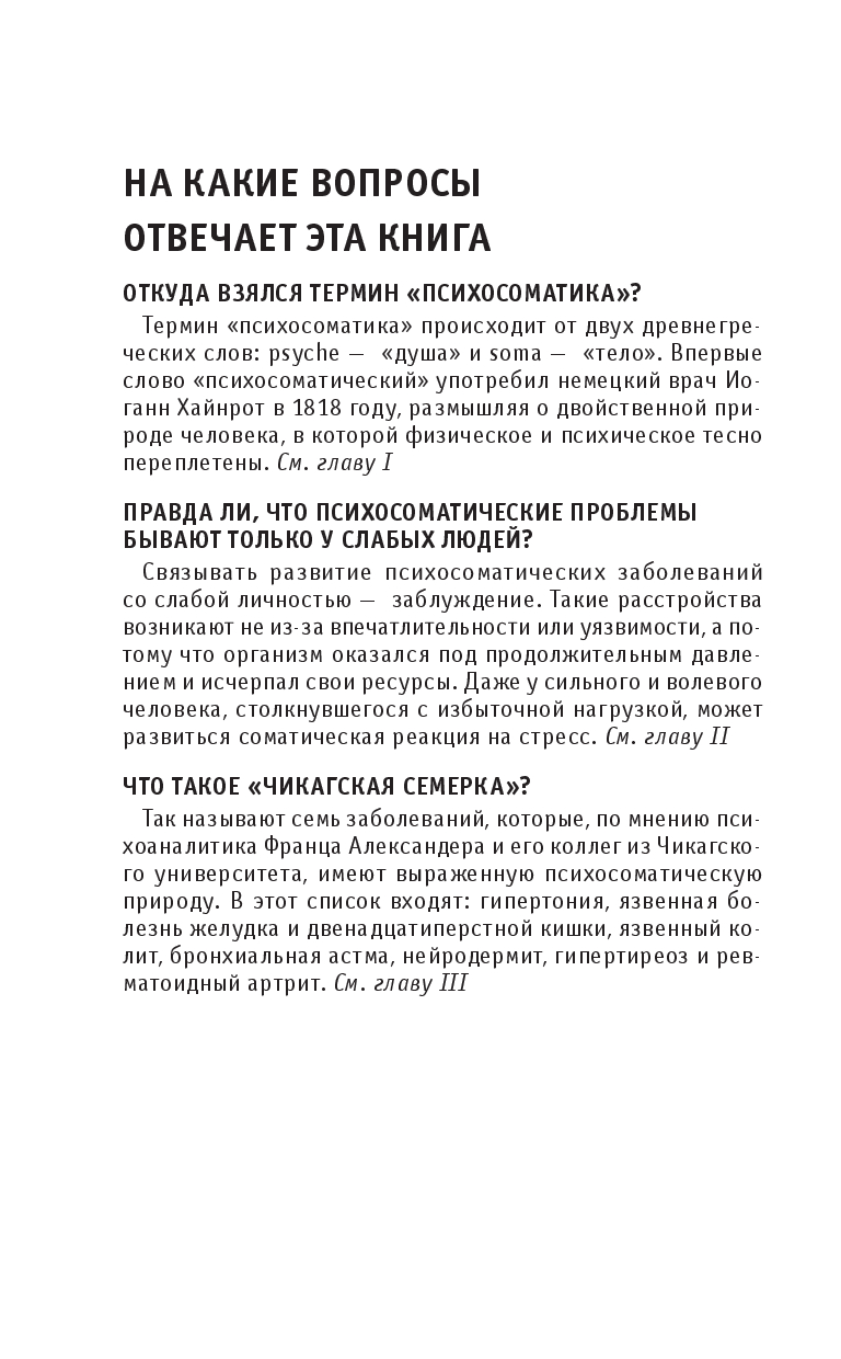 Психосоматика – междисциплинарная отрасль медицинской науки, изучающая влияние социальных, психологических и поведенческих факторов на состояние здоровья человека. Эта книга поможет разобраться, как формируется связь между переживаниями и болезнями, развенчает распространенные мифы о психосоматике и покажет, что может стоять за хроническим недомоганием.