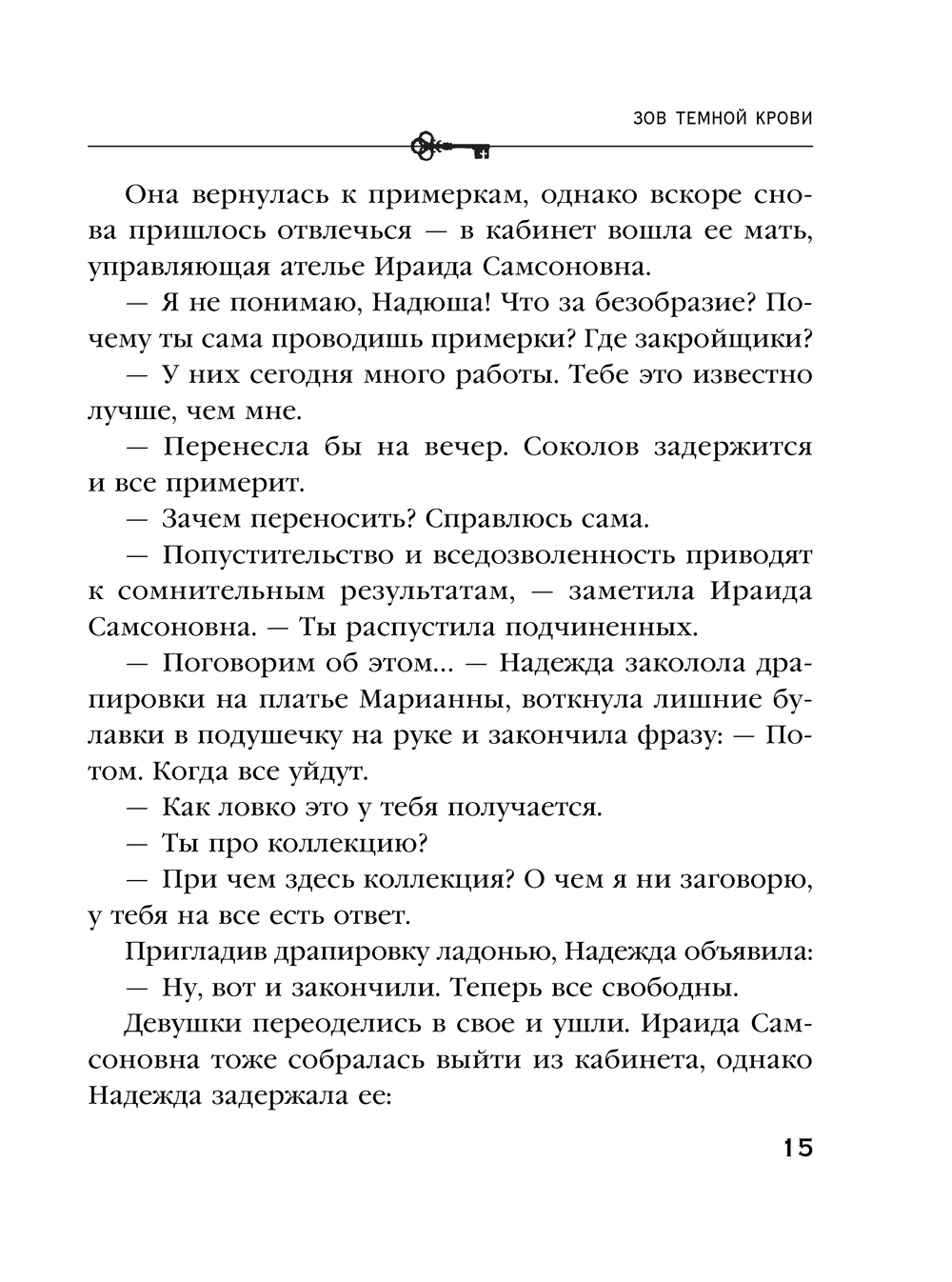 Такого еще не бывало – в модном ателье Надежды Раух обосновалась следственная группа! В соседнем дворе во время стройки были обнаружены давние захоронения, и Надежда вместе со своими сотрудниками волей-неволей оказалась вовлечена в расследование. Казалось бы, трудно придумать более мирное занятие, чем пошив одежды. Но следы старого преступления привели прямо в ателье! Неужели среди респектабельных клиентов Надежды могут обнаружиться убийцы или их жертвы? Дело осложняется тем, что в состав следственной группы входит возлюбленный Надежды Лев Астраханский, а в последнее время у них довольно натянутые отношения…