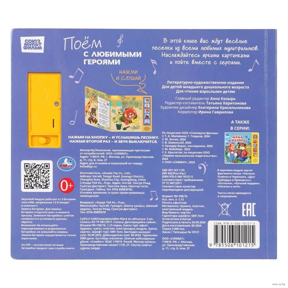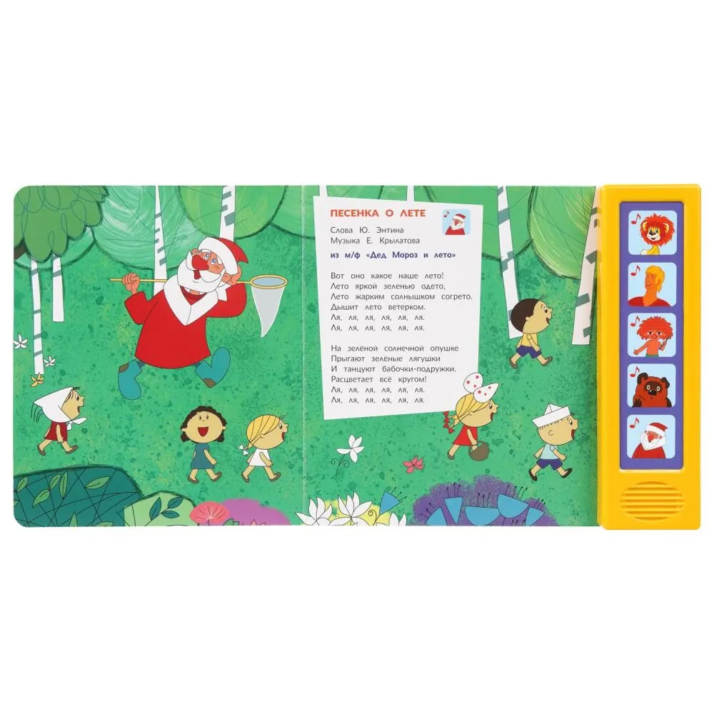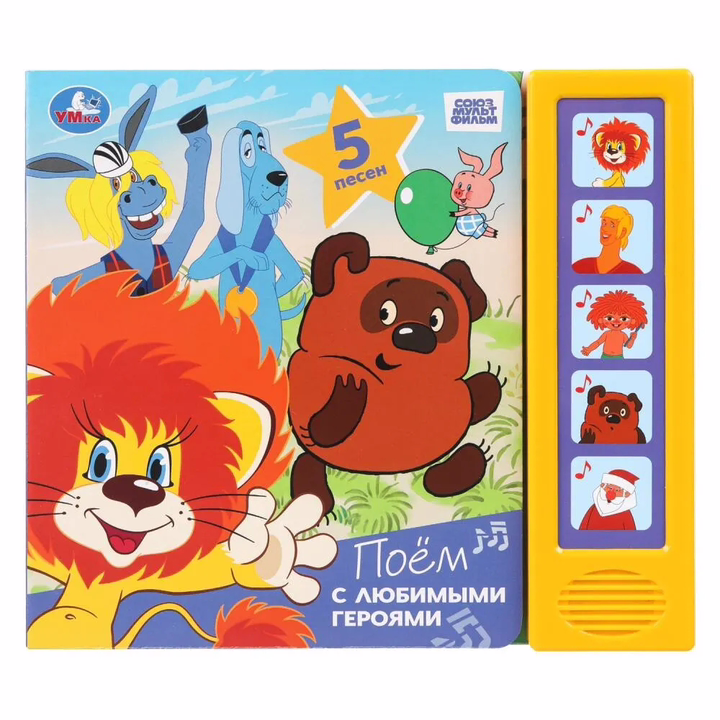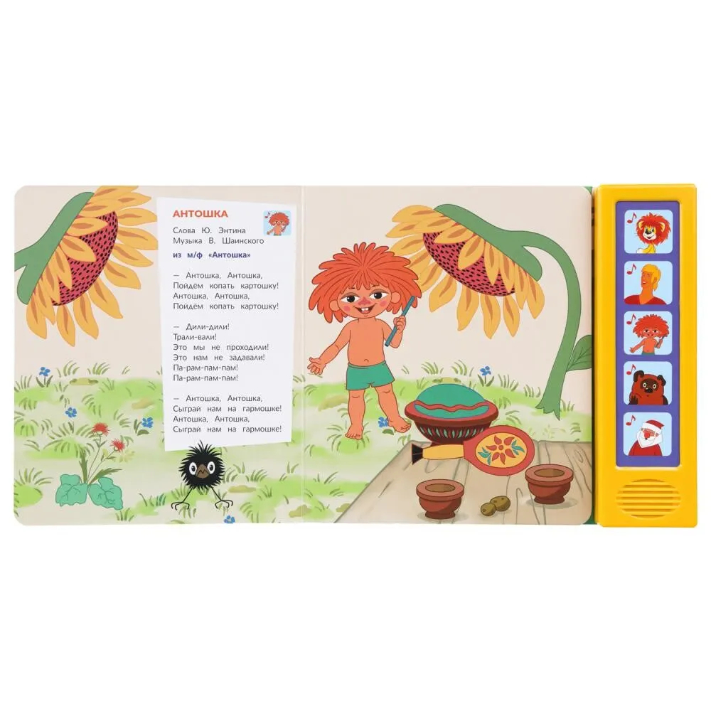 Ребенок с удовольствием будет листать плотные страницы, рассматривать яркие картинки и, конечно, нажимать на кнопку и слушать веселые песенки из любимых м/ф. Ребенок легко освоит включение звука: по нажатию на кнопку звук включится, при втором нажатии выключится. Книжка сделана из плотного картона, поэтому родители могут не опасаться за ее сохранность. Благодаря компактному формату ее удобно брать с собой.