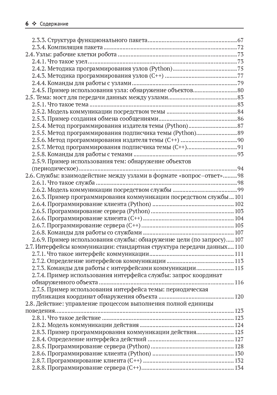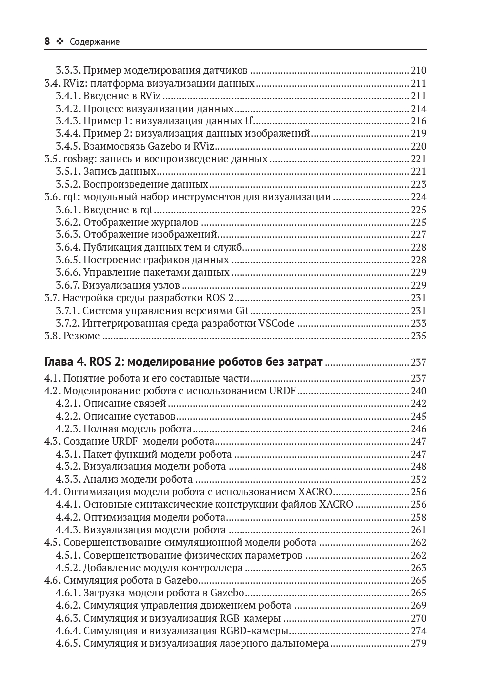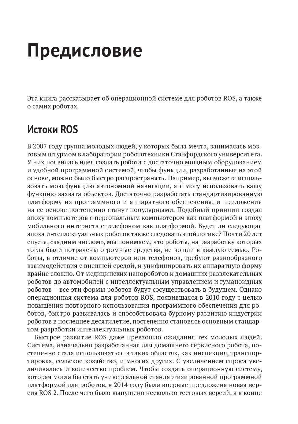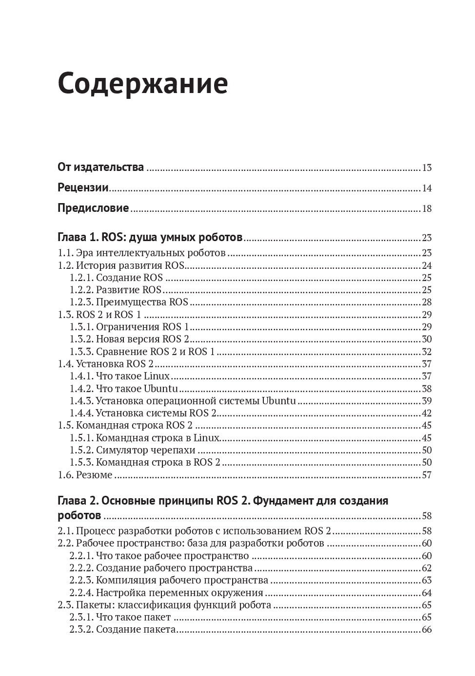 Книга посвящена основным принципам работы с операционной системой для роботов ROS 2 и практике разработки роботов. В ней приводятся подробные объяснения ключевых концепций, компонентов и инструментов ROS 2 и рассматриваются методы построения симуляционных и реальных робототехнических систем, а также способы применения ROS 2 для задач компьютерного зрения, построения карт и автономной навигации. Книга снабжена большим количеством иллюстраций, схем и исходного кода на языках C++ и Python, что позволяет не только освоить базовые функции ROS 2, но и глубже понять методы разработки роботов и применить полученные знания на практике.