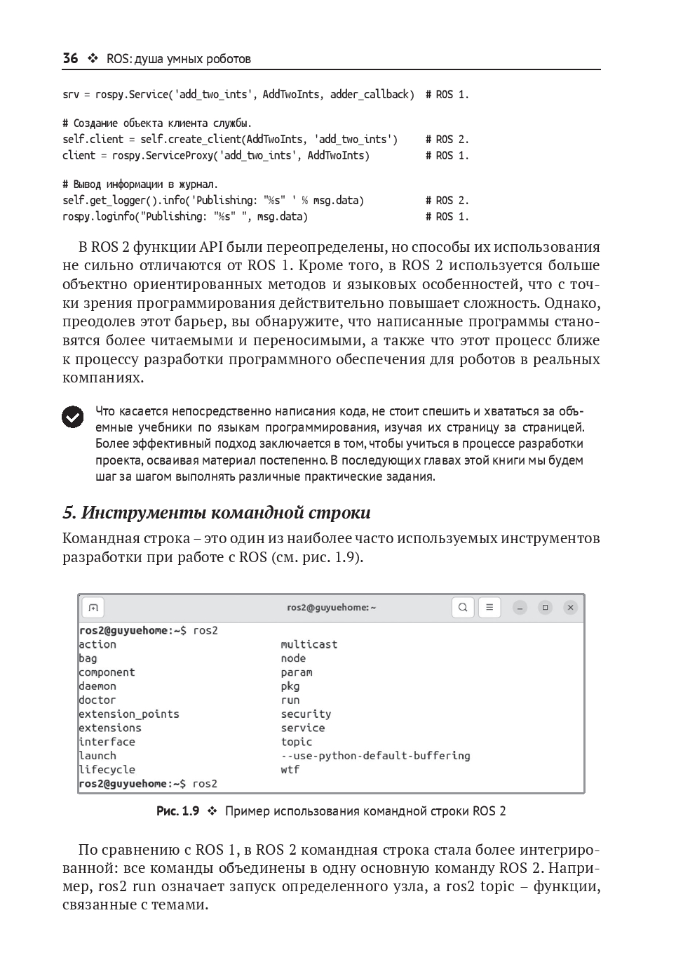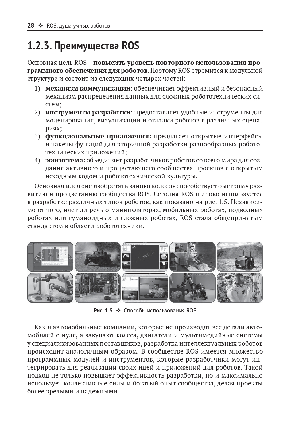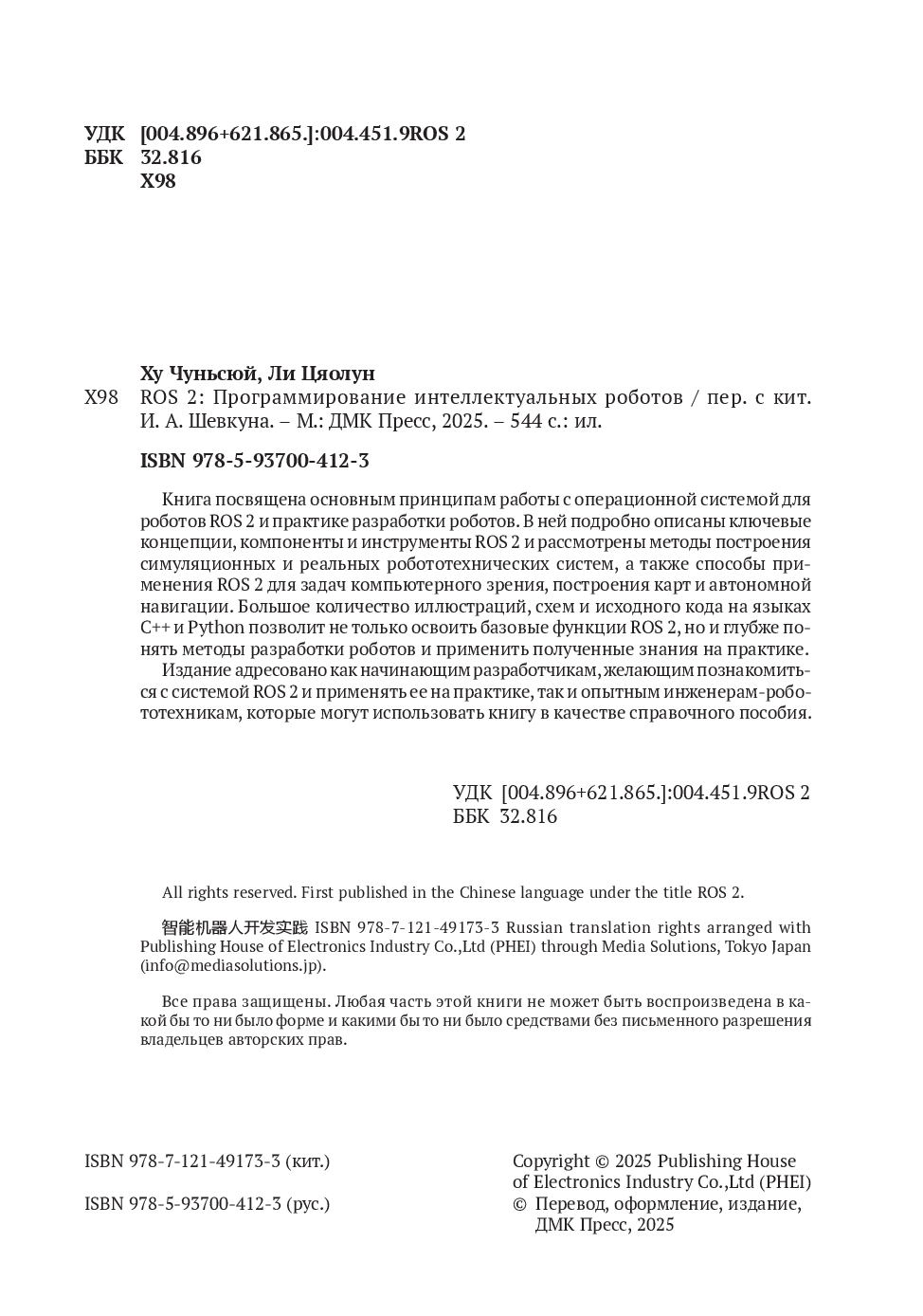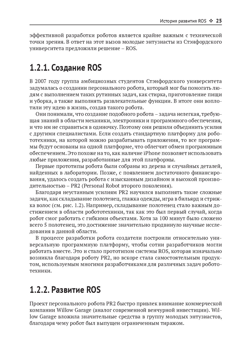 Книга посвящена основным принципам работы с операционной системой для роботов ROS 2 и практике разработки роботов. В ней приводятся подробные объяснения ключевых концепций, компонентов и инструментов ROS 2 и рассматриваются методы построения симуляционных и реальных робототехнических систем, а также способы применения ROS 2 для задач компьютерного зрения, построения карт и автономной навигации. Книга снабжена большим количеством иллюстраций, схем и исходного кода на языках C++ и Python, что позволяет не только освоить базовые функции ROS 2, но и глубже понять методы разработки роботов и применить полученные знания на практике.
