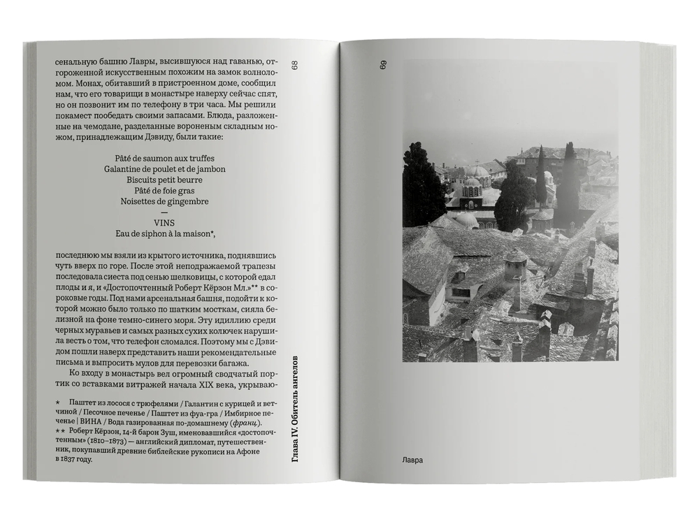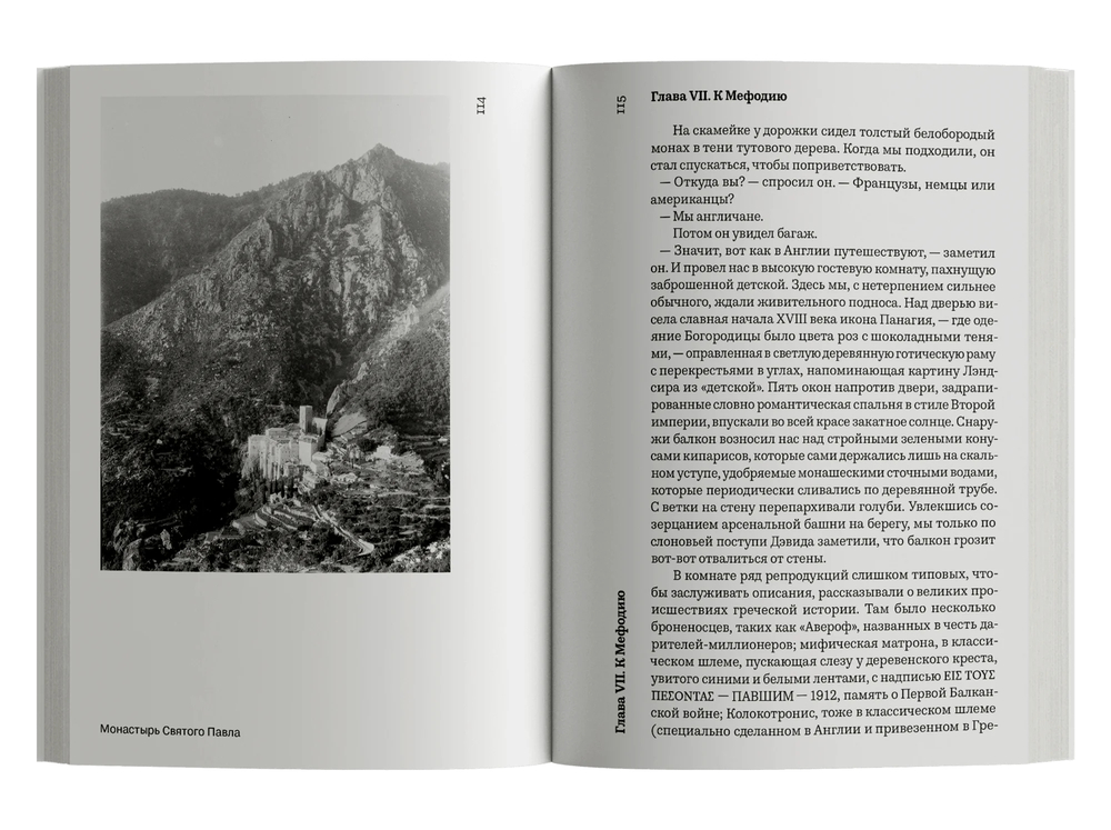 Устав от лондонских вечеринок, представитель "золотой молодежи" и страстный любитель искусства Роберт Байрон в компании трех друзей отправляется на Святую гору Афон. Вооруженные фотоаппаратурой путешественники побывали почти во всех монастырях Афона, общались с монахами, делали зарисовки, фотографировали фрески в храмах и трапезных. Очерк вырос в яркое и емкое повествование о двух путешествиях по Святой Горе (в 1926-м и 1927-м), в котором древняя история остроумно сочетается с современной – в области политики, искусства и нравов, а тонкий эстетизм и дружеская атмосфера мужской компании – с бесхитростным монашеским укладом и пронзительными описаниями природы. Благодаря своему ироничному уму, открытости иной жизни, искусству и еде, готовности преодолевать трудности нетуристического пути и исторического познания Байрон создает объемный и живой образ уникального монашеского сообщества Великой Лавры, Дионисиата, Зографа, Хиландара. Этот текст о поездке в незыблемое прибежище православной веры, тревожимое историческими событиями, характеризует культуру путешествий в межвоенный период.