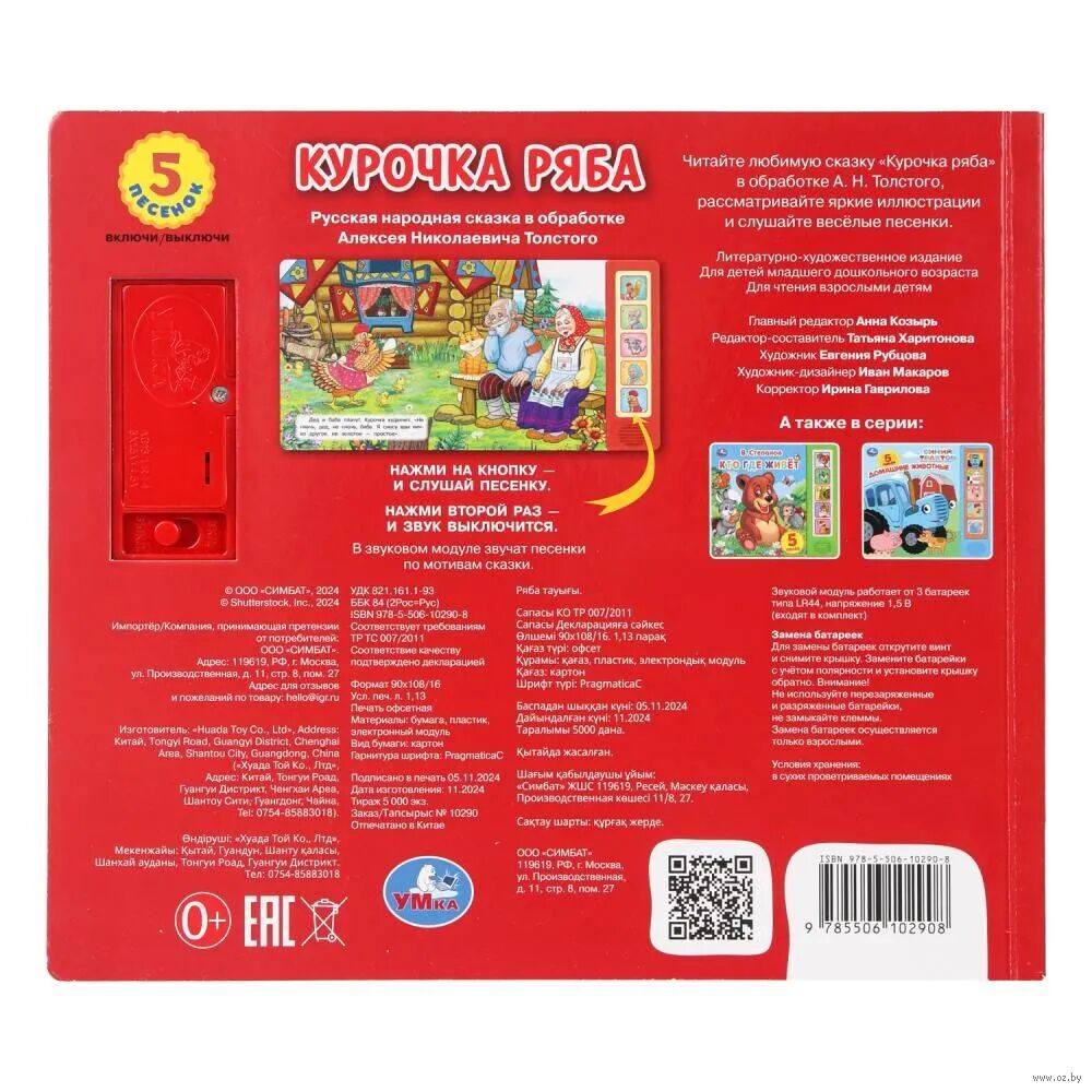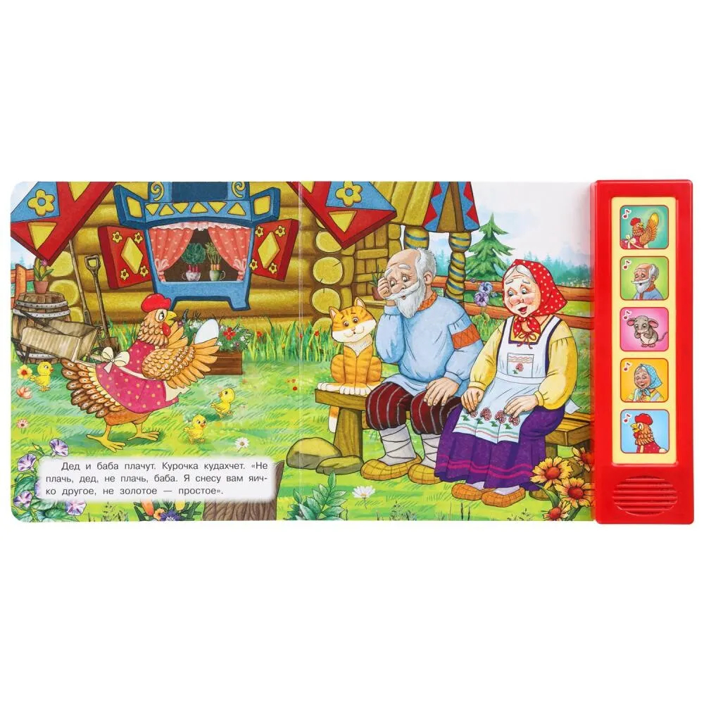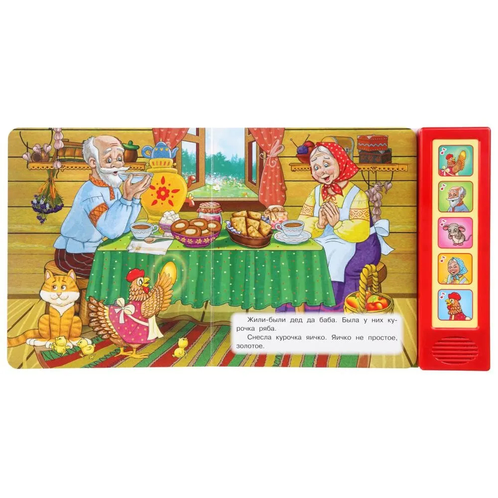 Малыш с удовольствием будет листать плотные страницы, рассматривать яркие картинки и погружаться в удивительный сказочный мир, а также нажимать на звуковые кнопки и слушать мелодичные песенки. Ребенок легко освоит включение звука: по нажатию на кнопку песенка включится, при втором нажатии выключится и т.д. Благодаря компактному размеру книгу удобно взять с собой в дорогу.