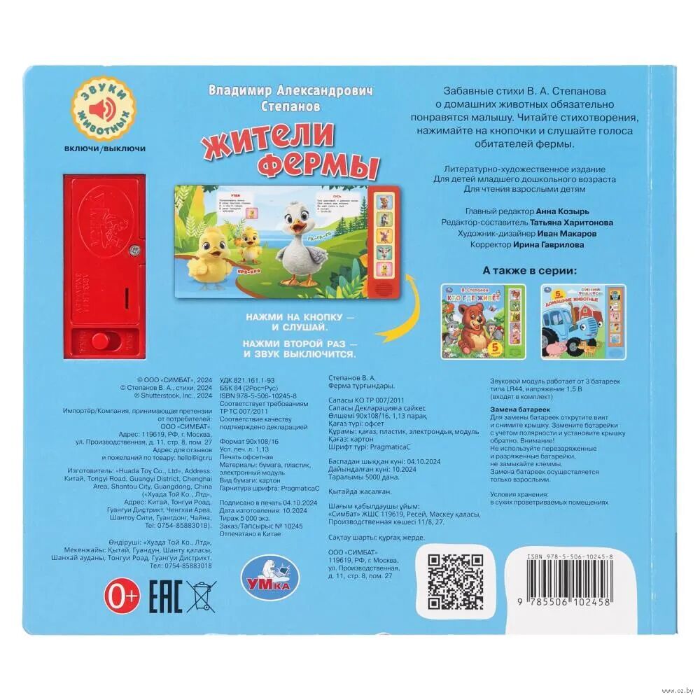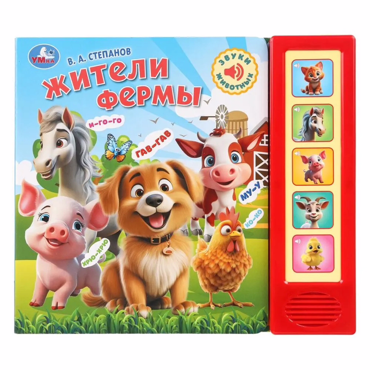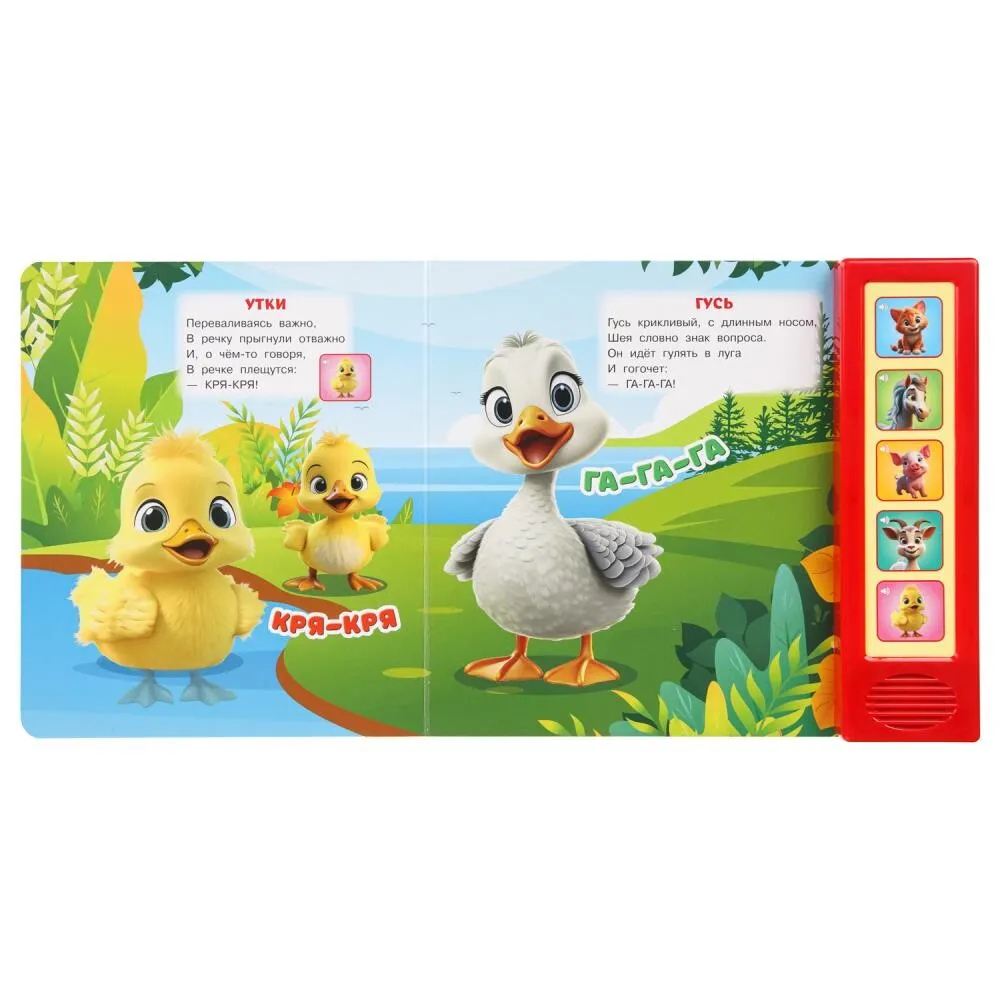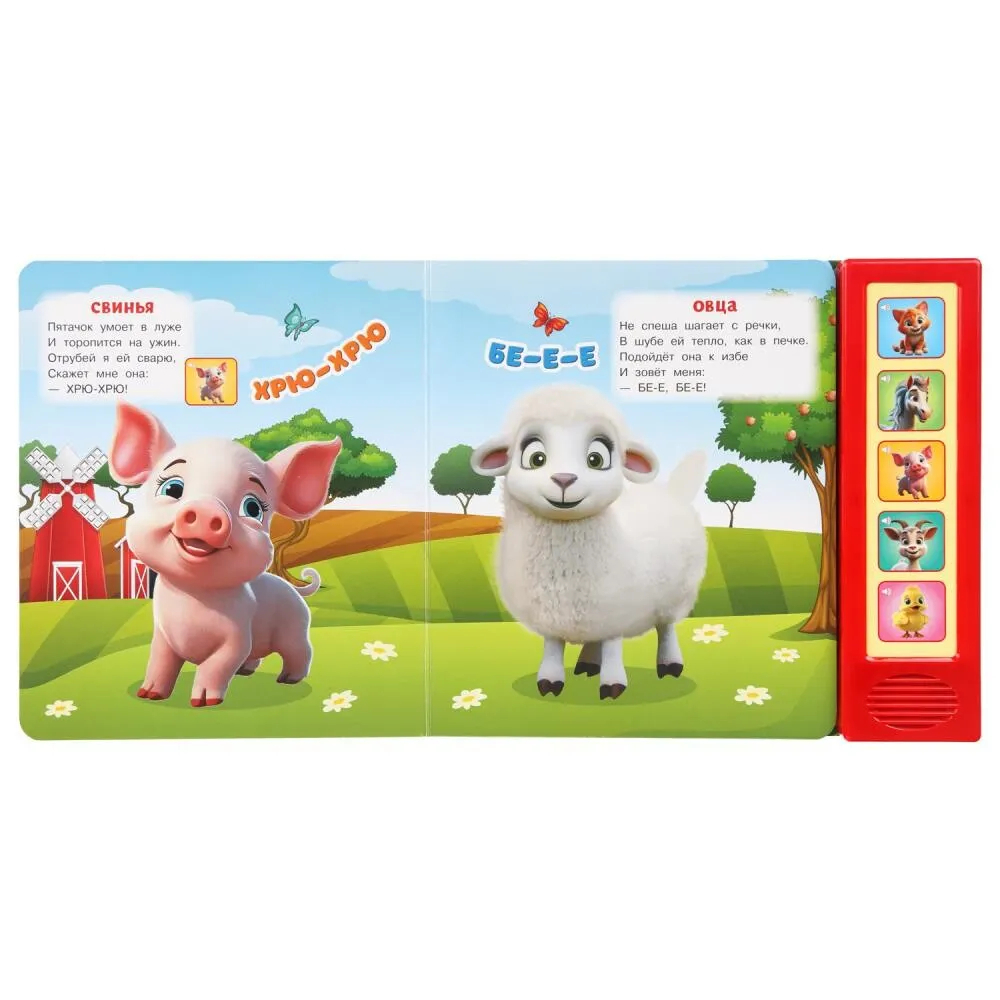 Красочная музыкальная книга познакомит малыша с животными, которые живут на ферме. А песенки сделают чтение еще более увлекательным. Ребенок легко освоит включение звука: по нажатию на кнопку звук включится, при втором нажатии выключится. Книжка сделана из плотного картона, поэтому родители могут не опасаться за ее сохранность. Благодаря компактному формату ее удобно брать с собой.