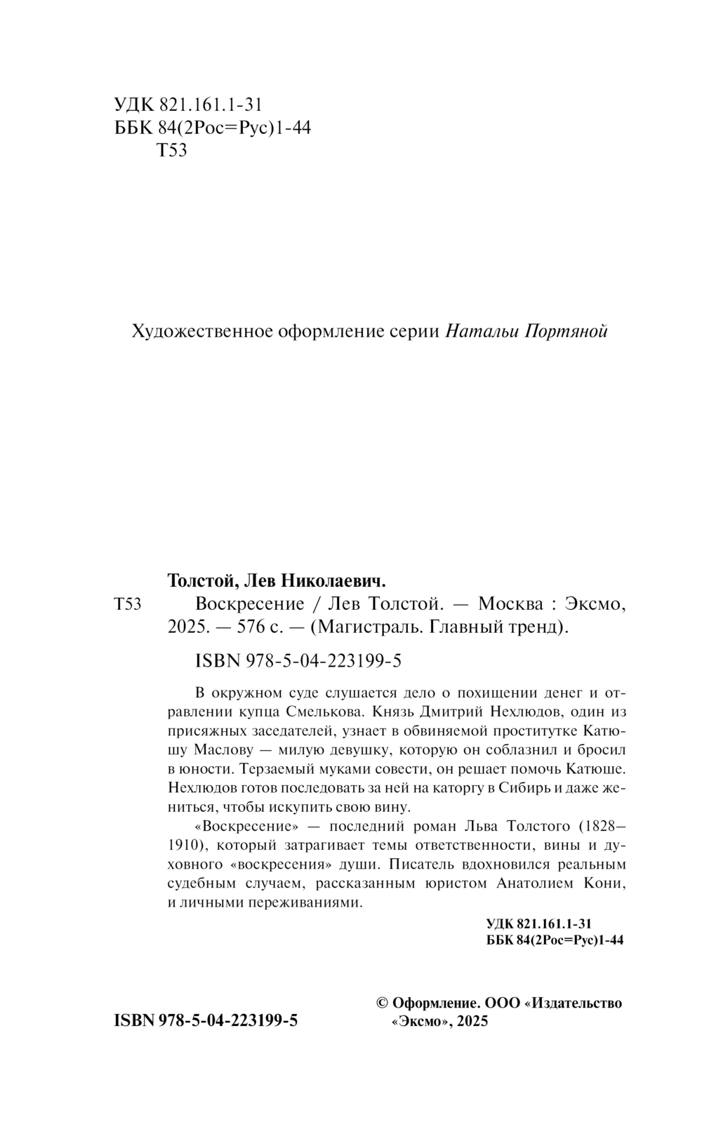 "Воскресение" – последний роман Льва Толстого (1828–1910), который затрагивает темы ответственности, вины и духовного "воскресения" души. Писатель вдохновился реальным судебным случаем, рассказанным юристом Анатолием Кони и личными переживаниями.