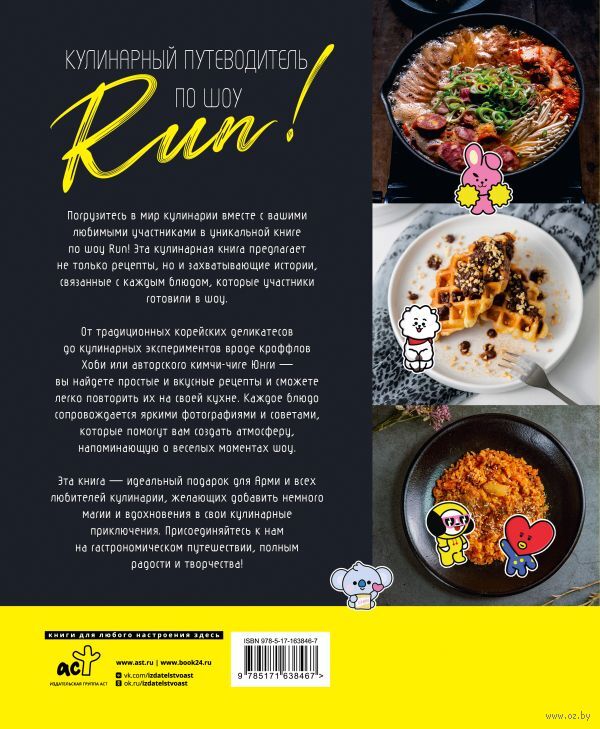 Погрузитесь в мир кулинарии вместе с вашими любимыми участниками BTS в уникальной книге, вдохновленной шоу Run BTS! Эта кулинарная книга предлагает не только рецепты, но и захватывающие истории, связанные с каждым блюдом, которые участники готовили в шоу.