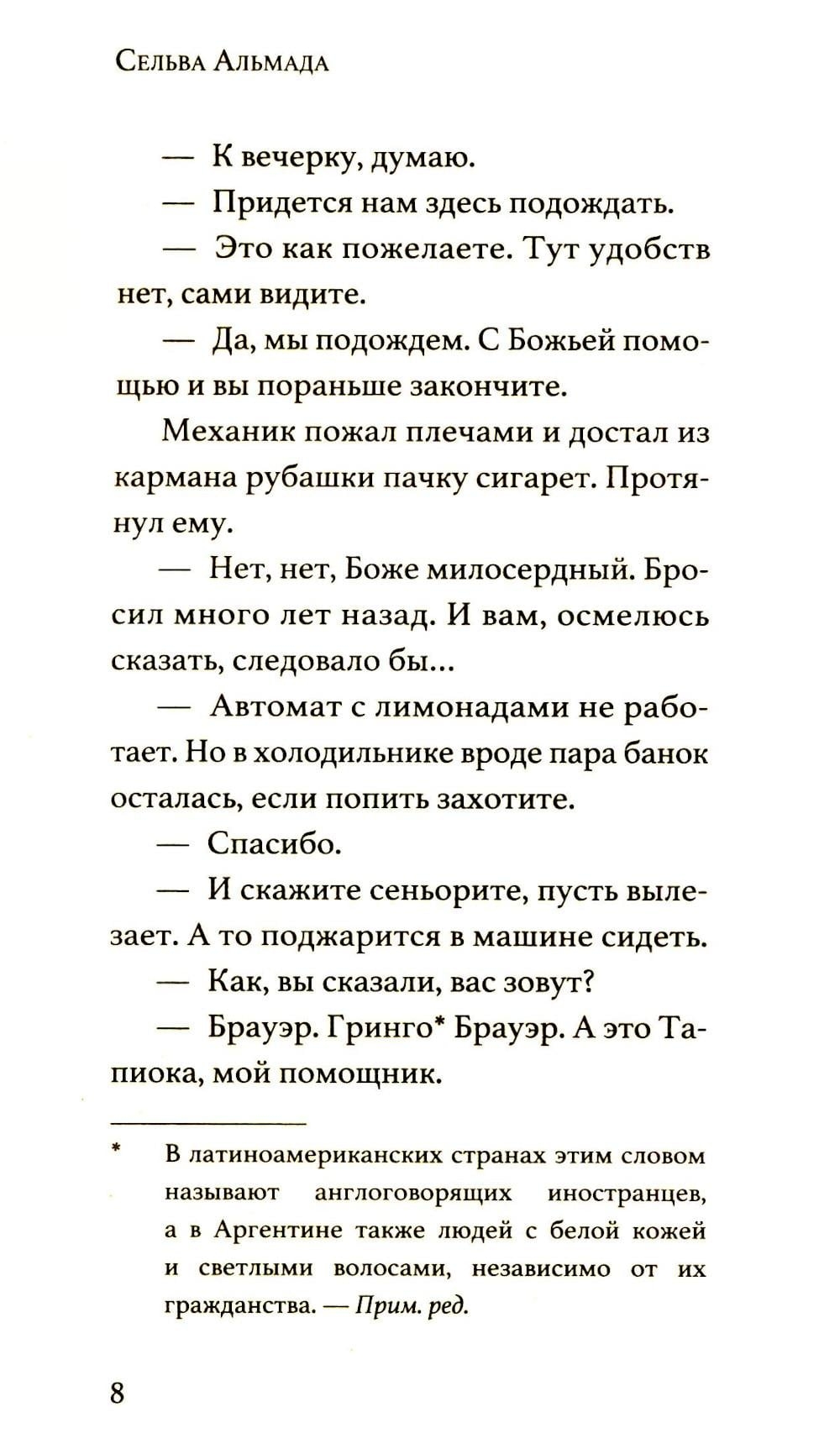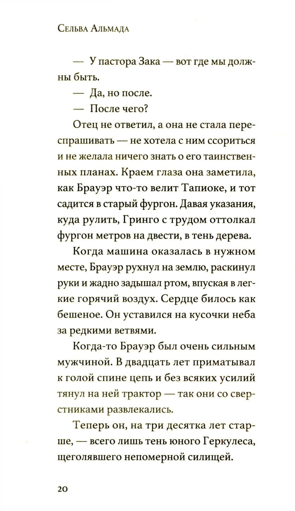 Ветер сметает многое, но Альмада не обещает очищения после бури. В ее книге остаются горы, солнце, приземистые деревья, давно поломанные машины, залитые потом рубашки и одинокие жизни.
