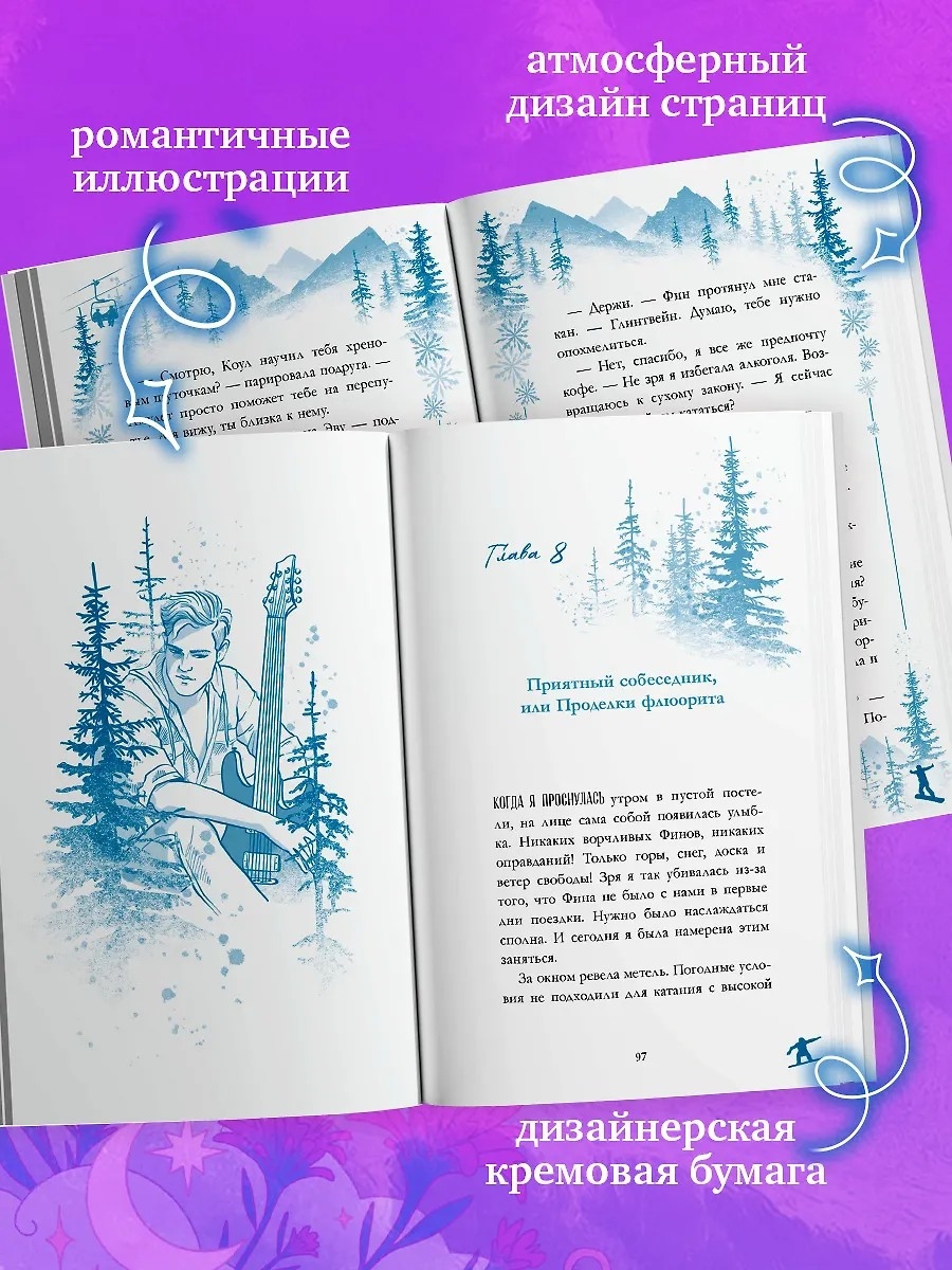 "Ковбой и зубная фея" – яркая и остроумная новелла о любви с первого взгляда, приключениях и неожиданных поступках. Искрящаяся зимняя атмосфера и романтика, рок-музыка и сноуборд, свобода и путешествие на горнолыжный курорт в Вайоминге – в чудесной новелле Хелены Хейл. Волшебный дизайн обложки невероятной Наили Бикмухаметовой, атмосферное оформление страниц и уникальный формат с плотной и долговечной мягкой обложкой и иллюстрированными клапанами превращают пятую книгу из серии Trendbooks Novella в настоящее сокровище для всех влюбленных в книги.