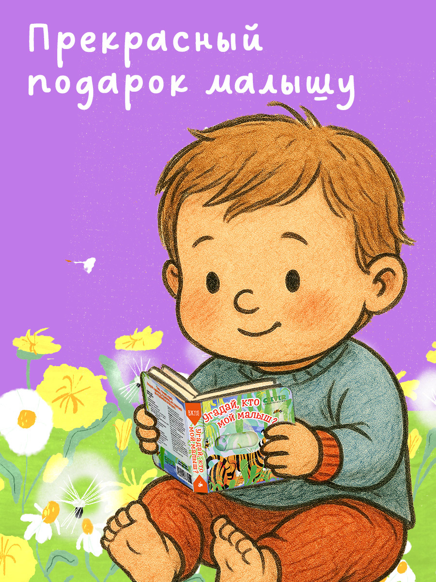 Книга детская "Угадай, кто мой малыш?", которую выпускает издательство Clever – отличный подарок ребенку 2 года по любому поводу. Это может быть первая книга малыша для чтения и игры вместе с родителями, книжка для малышей, которые любят играть в "ку-ку".