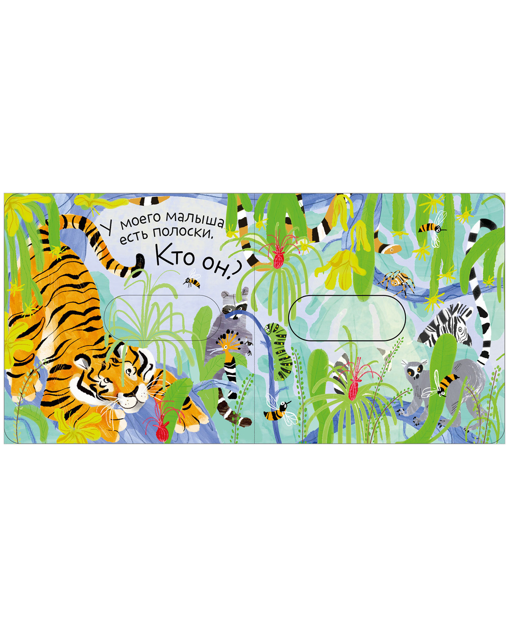 У этого малыша есть полоски, а у этого – кисточка на хвосте. Как же их зовут? Открывайте задвижки, чтобы узнать, кто спрятался на странице.