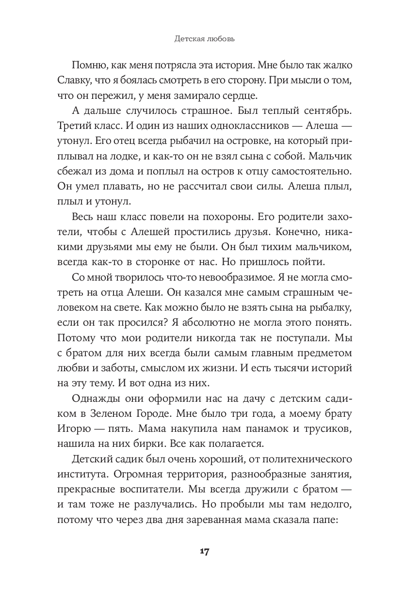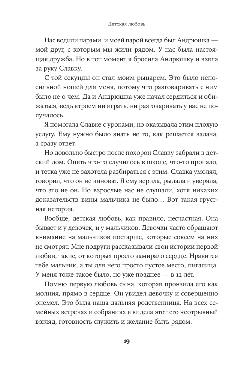 Одинаковых историй любви не бывает, а свою судьбу можно найти в любом возрасте – это доказывает Нина Зверева, которая многие годы собирала самые захватывающие истории любви, которыми делились читатели ее книг и подписчики телеграм-канала "Нина Зверева: семья и школа". Все истории очень разные – романтические, трогательные, печальные, безответные, трагические, страстные, смешные, удивительные.