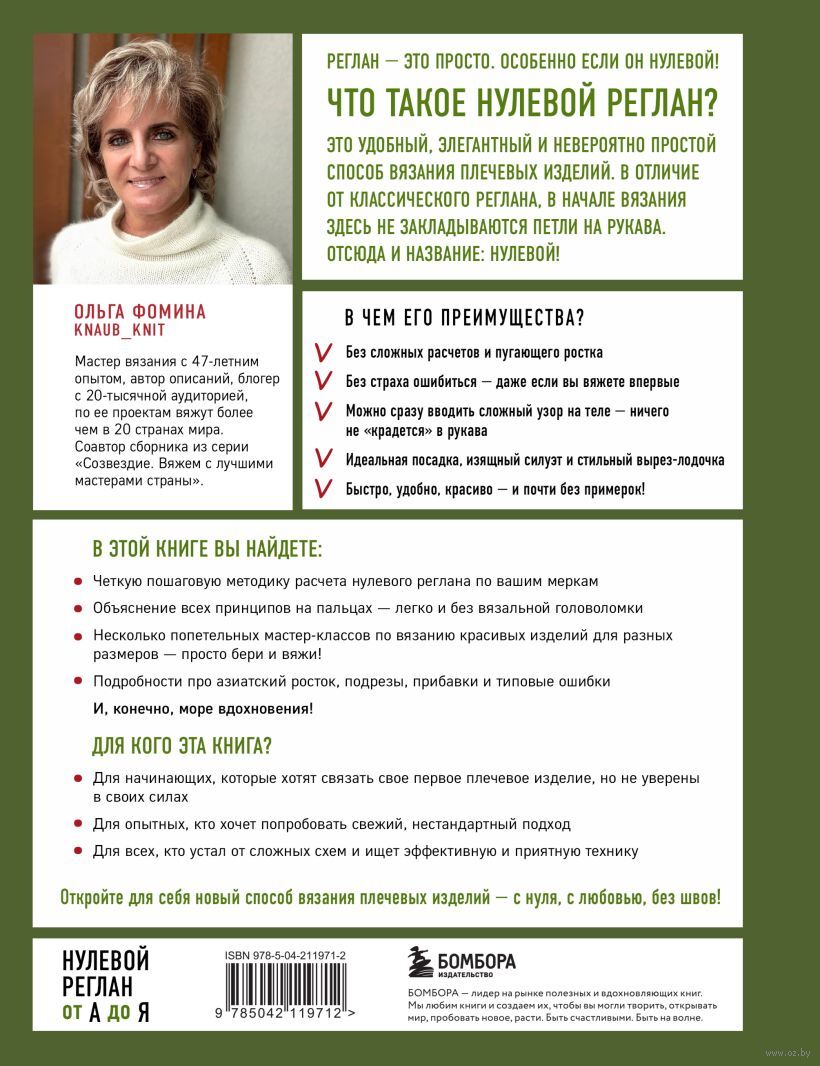 Автор – Ольга Фомина, популярный преподаватель и создатель множества расчетных мастер-классов – с легкостью объясняет, что такое нулевой реглан, в чем его преимущества и как применять эту конструкцию на практике. Никаких сложных схем и мучительных расчетов – только четкая логика, авторские лайфхаки, удобные формулы и наглядные примеры.