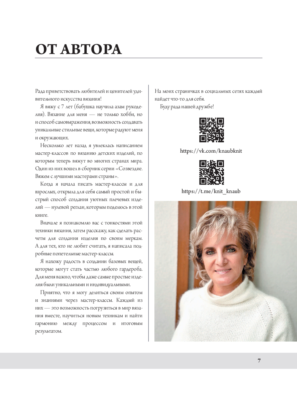В книге – пошаговый расчет нулевого реглана по индивидуальным меркам, особенности посадки, прибавок, подрезов, азиатский росток, несколько попетельных мастер-классов по вязанию авторских изделий с готовыми расчетами, полезные советы, наглядные схемы и ответы на типичные вопросы. Книга подойдет для начинающих, которым нужен понятный старт, для уверенных вязальщиц, готовых к экспериментам, для всех, кто мечтает создавать простые, но эффектные плечевые изделия, которые идеально сидят и легко вяжутся.