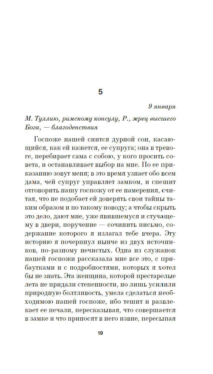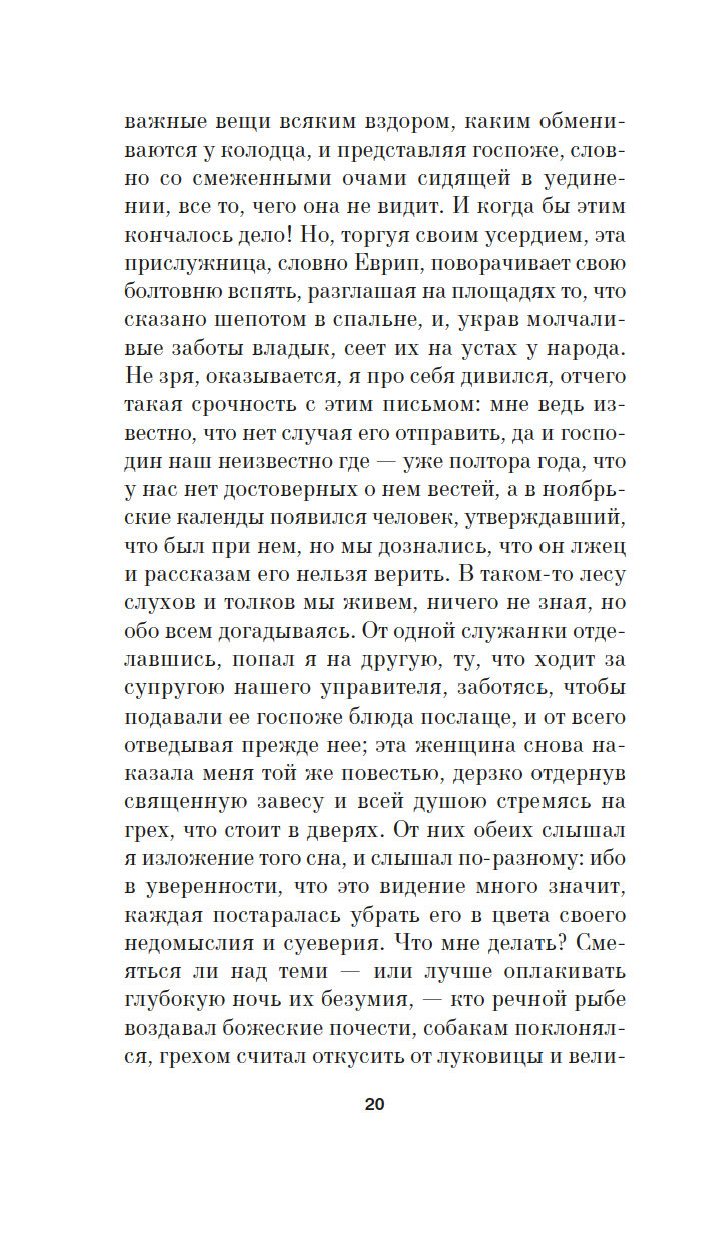 Франция, конец XII века. Замковый священник, молодой и честолюбивый, пишет письма давно умершим латинским писателям, щеголяя риторическим искусством и рассказывая о том, что ежедневно происходит в замке и с ним самим. Между тем внезапно возвращается господин замка, давно уже принявший крест и уехавший в Палестину. Оказалось, что его путешествие пошло совсем не так, как замышлялось, что до Палестины он не добрался, а побывал в совсем других краях, где не стяжал военной славы, более того – вернувшись домой, привез с собой таинственное зло, от которого трудно отвязаться…
