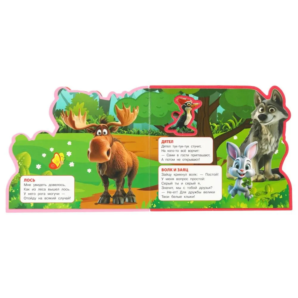 Оригинально оформленная книжка с фигурной вырубкой, яркими страницами и мягким обрамлением обязательно заинтересует маленького любознайку. Ребенок с удовольствием будет листать книгу с помощью специальных закладок и играть с 5 пазлами-вставками, извлекая их из страниц и помещая обратно. Благодаря компактному формату книжку удобно брать с собой в дорогу.
