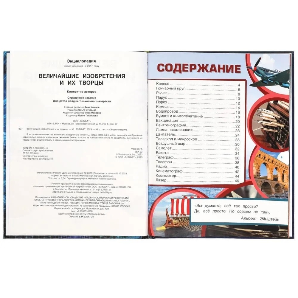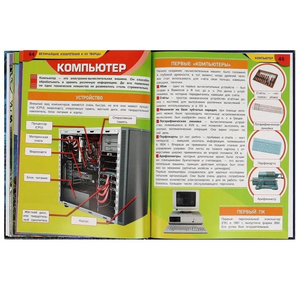 На страницах этой занимательной энциклопедии юного читателя ждёт множество интересных фактов о великих изобретателях и их открытиях, которые оказывали и оказывают большое влияние на нашу жизнь. Зрелищные картинки привлекут внимание ребёнка, помогут в лёгкой форме усвоить новую информацию.