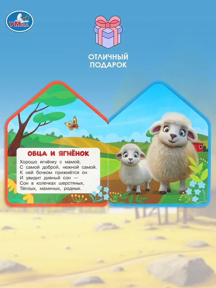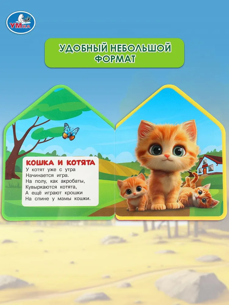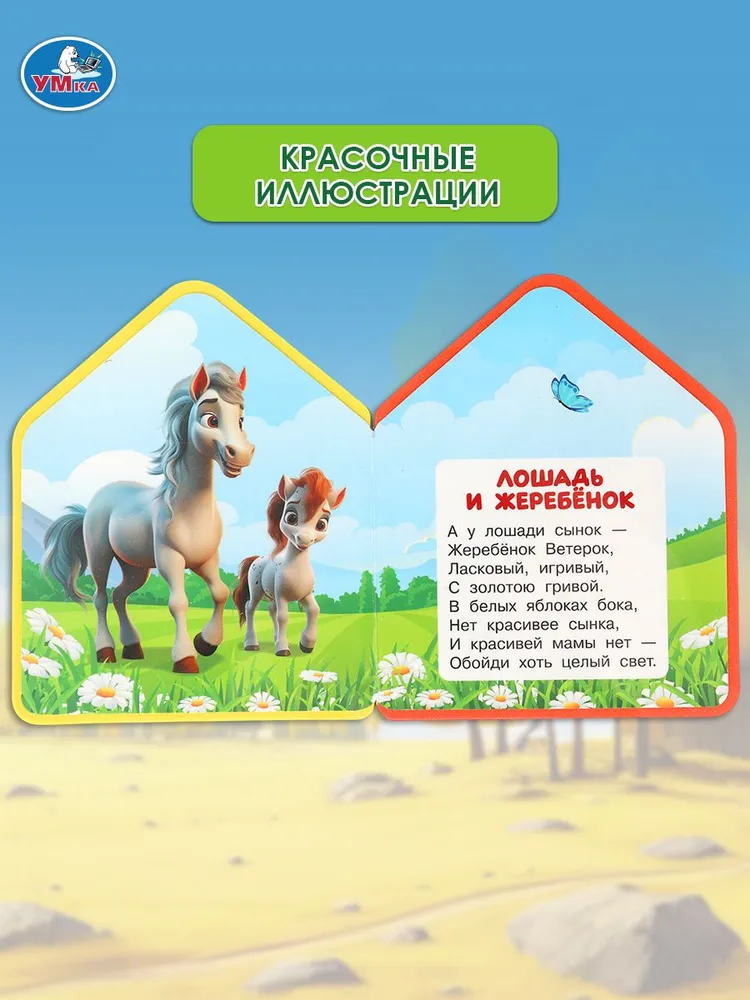 Необычный дизайн книги с фигурной вырубкой обязательно привлечет внимание ребёнка. Благодаря форме, мягким страничкам, милым персонажам, добрым стихам про животных и ярким картинкам эта книжка обязательно станет любимой игрушкой малыша. Удобный небольшой формат позволяет взять данное издание с собой в поездку или на прогулку: книга легко поместится в женскую сумочку или детский рюкзак.