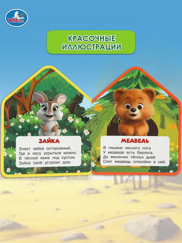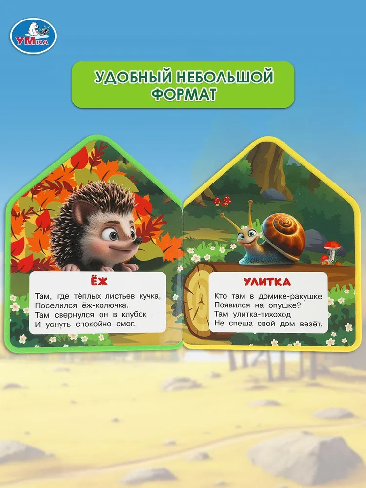 Необычный дизайн книги с фигурной вырубкой обязательно привлечет внимание ребёнка. Благодаря форме, мягким страничкам, милым персонажам, добрым стихам про животных и ярким картинкам эта книжка обязательно станет любимой игрушкой малыша. Удобный небольшой формат позволяет взять данное издание с собой в поездку или на прогулку: книга легко поместится в женскую сумочку или детский рюкзак.