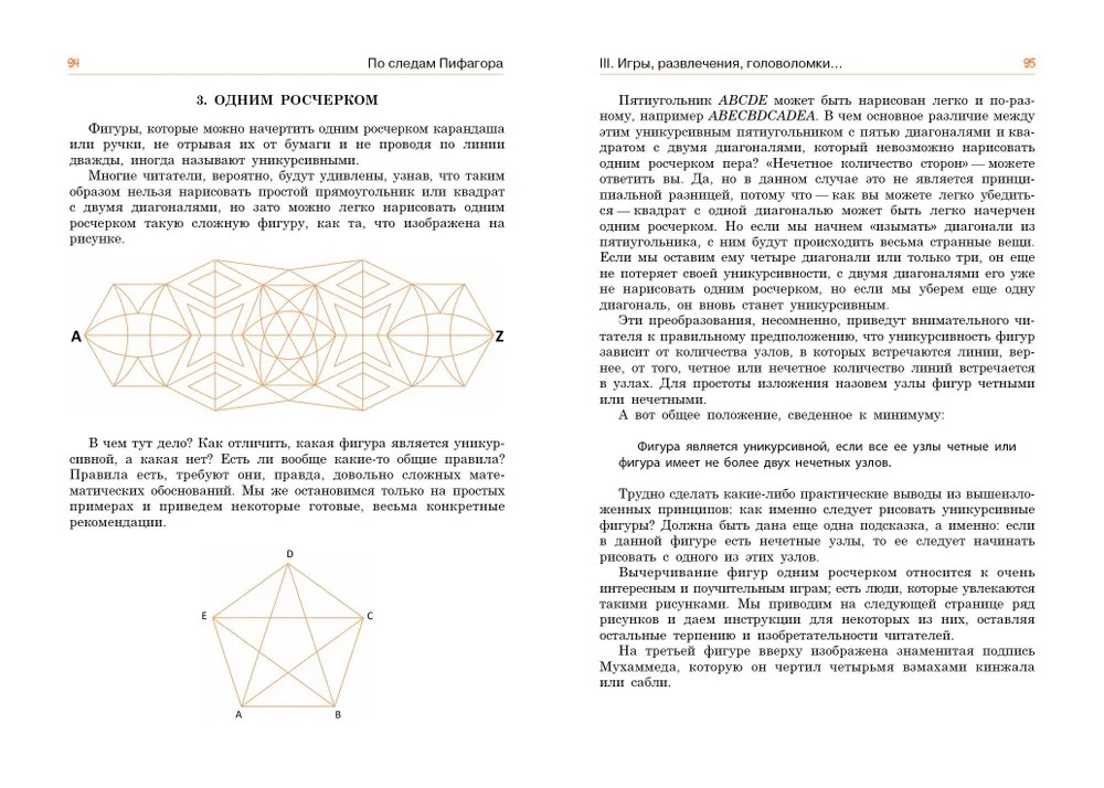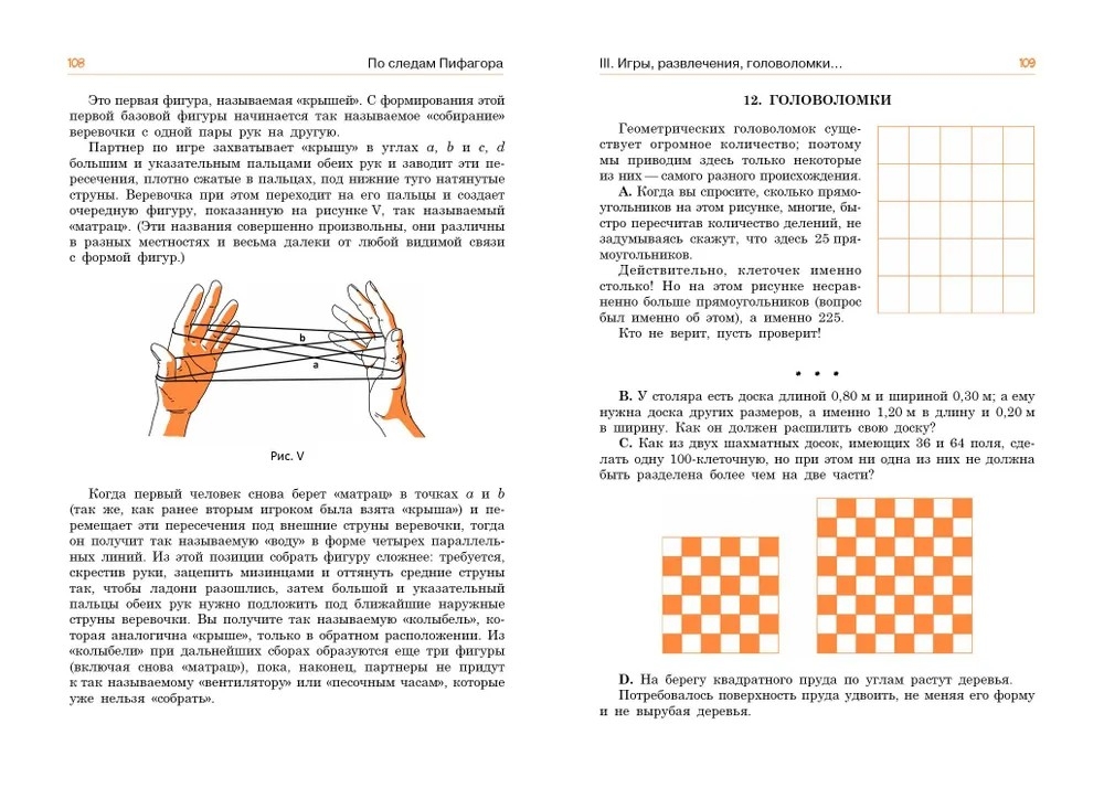 Занимательны геометрические головоломки на разрезание и исчезновение, задачи на рисование фигур одним росчерком и трюки со спичками, над некоторыми из них, как и над задачами на обход шахматной доски, придется поломать голову. Книга познакомит с непривычными способами игры в домино, расскажет, как люди веками с самыми разными целями возводили лабиринты, и предложит читателю самому пройти некоторые из них.