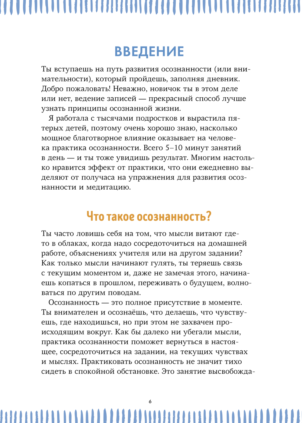 График жизни современного подростка очень насыщенный. Школа, секции, дополнительные занятия, общение с друзьями и ожидания родителей – необходимость везде и всегда успевать может стать источником сильного напряжения. Но есть эффективный способ снизить уровень стресса – практика осознанности. В этом дневнике собраны простые дыхательные упражнения, медитации и советы, которые помогут включить успокаивающие практики в свой распорядок дня. Потратив всего несколько минут, читатель добавит в свою жизнь легкости, сосредоточенности и счастья. Да и само заполнение дневника поможет ощутить внутреннюю гармонию.