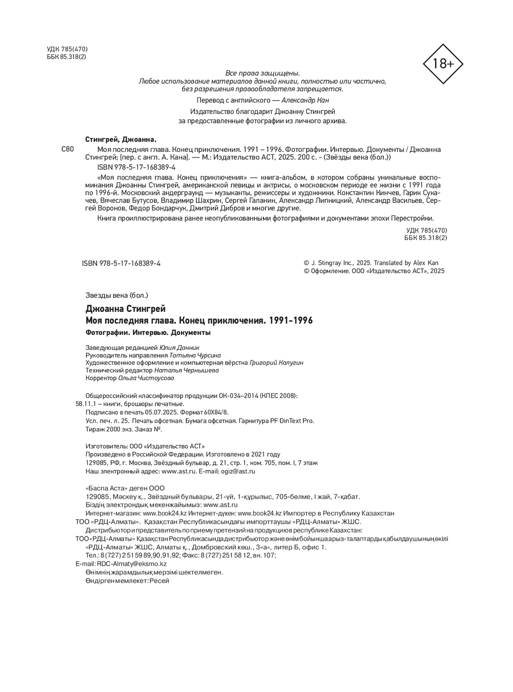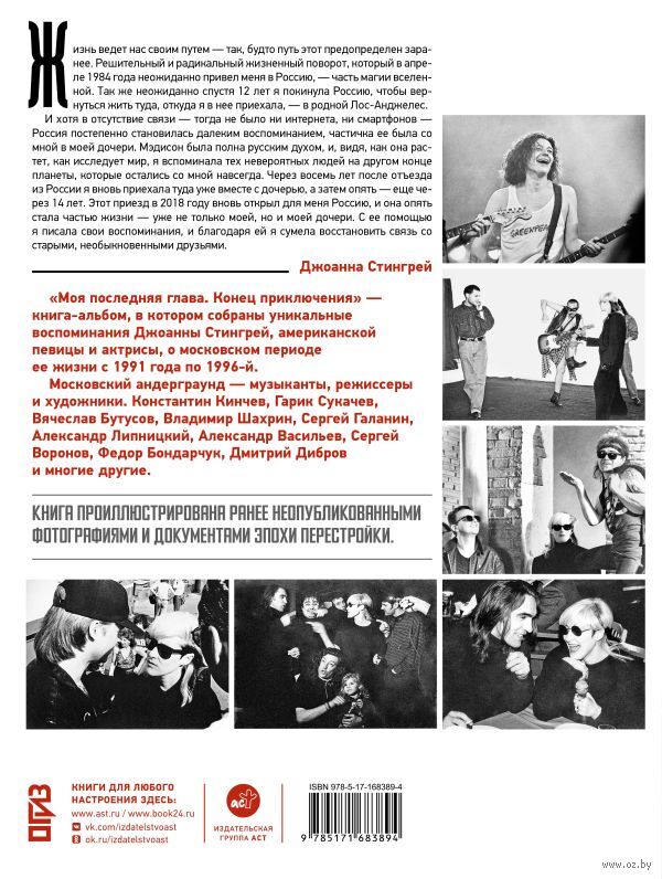 "Моя последняя глава. Конец приключения " – книга-альбом, в котором собраны уникальные воспоминания Джоанны Стингрей, американской певицы и актрисы, о московском периоде ее жизни с 1991 года по 1996-й.