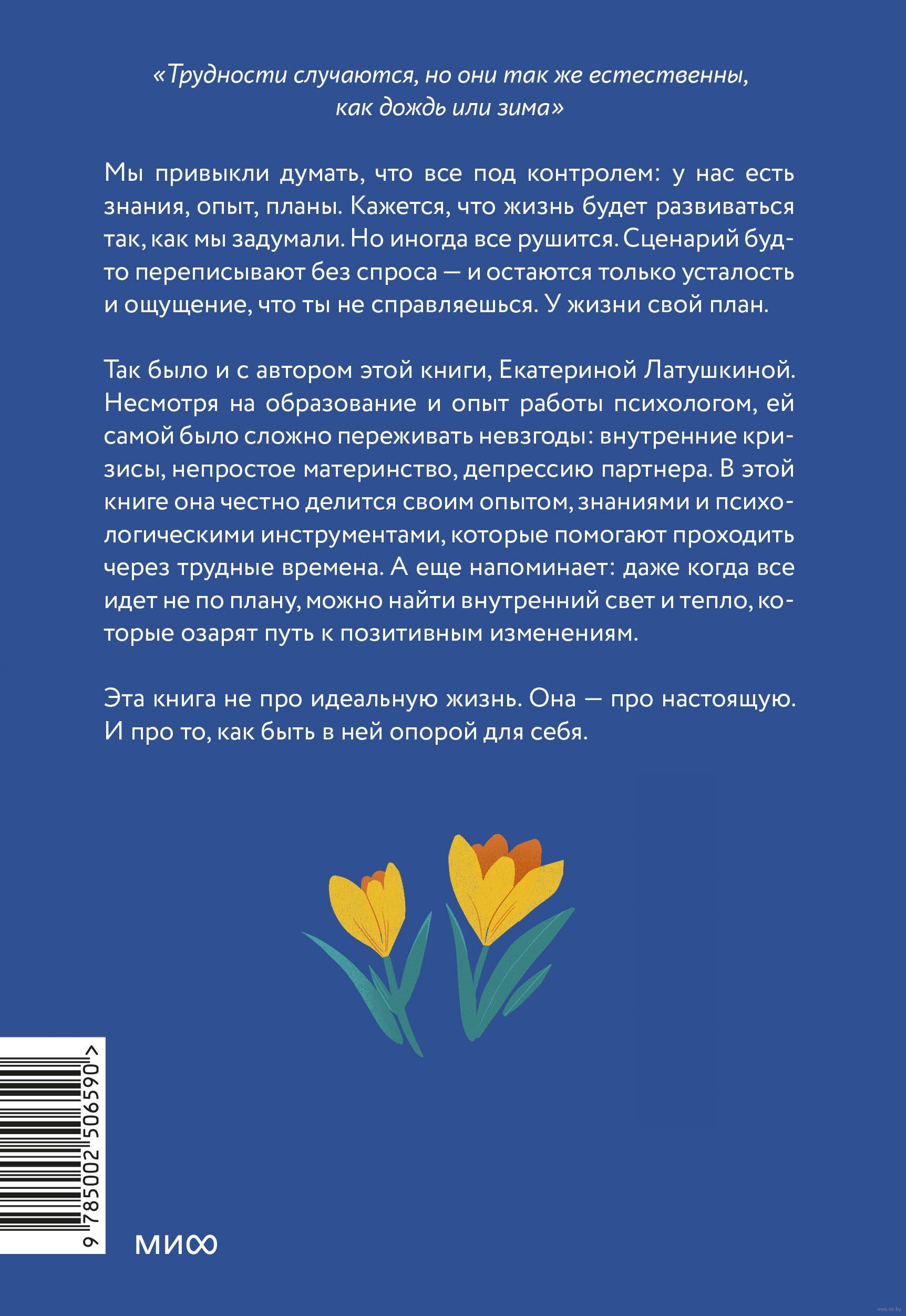 Так было и с автором этой книги, Екатериной Латушкиной. Несмотря на образование и опыт работы психологом, ей самой было непросто переживать невзгоды: внутренние кризисы, непростое материнство, депрессию партнера. В этой книге она честно делится своим опытом, знаниями и психологическими инструментами, которые помогают проходить через трудные времена. А еще напоминает: даже когда все идет не по плану, можно найти внутренний свет и тепло, которые озарят путь к позитивным изменениям.