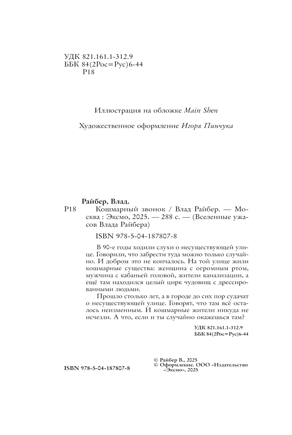 | Изготовитель | ООО «Издательство «Эксмо». РФ, г. Москва, ул. Клары Цеткин, 18, корп. 5 |