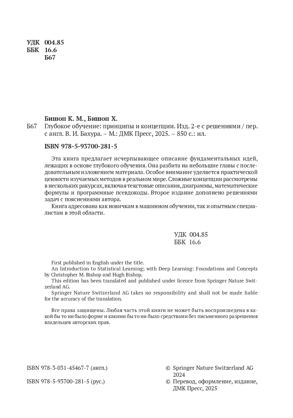 | Название в оригинале | Deep Learning: Foundations and Concepts |