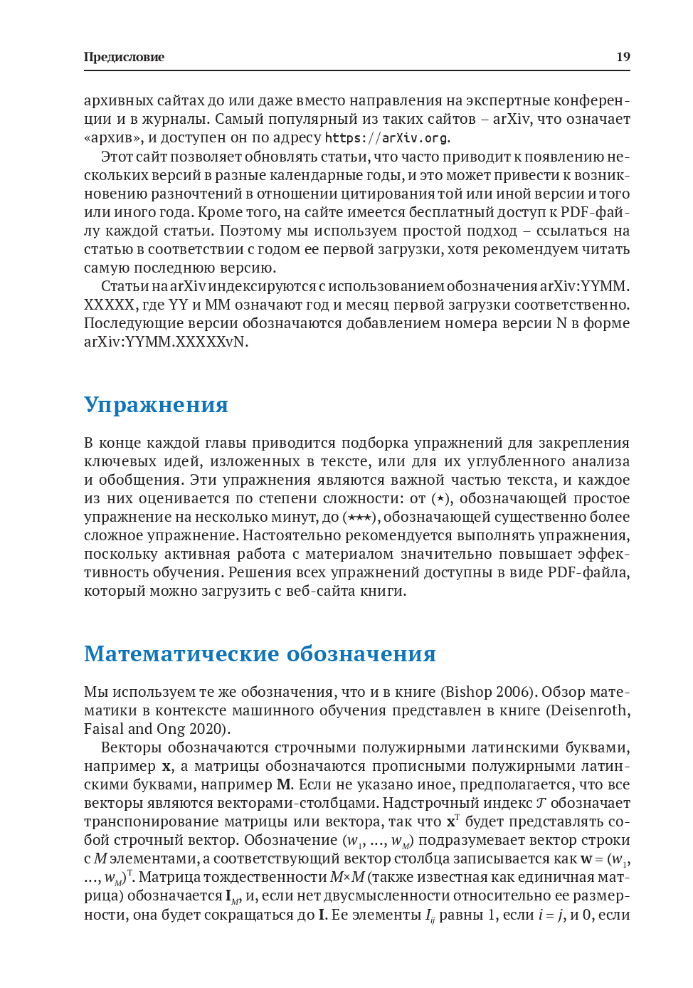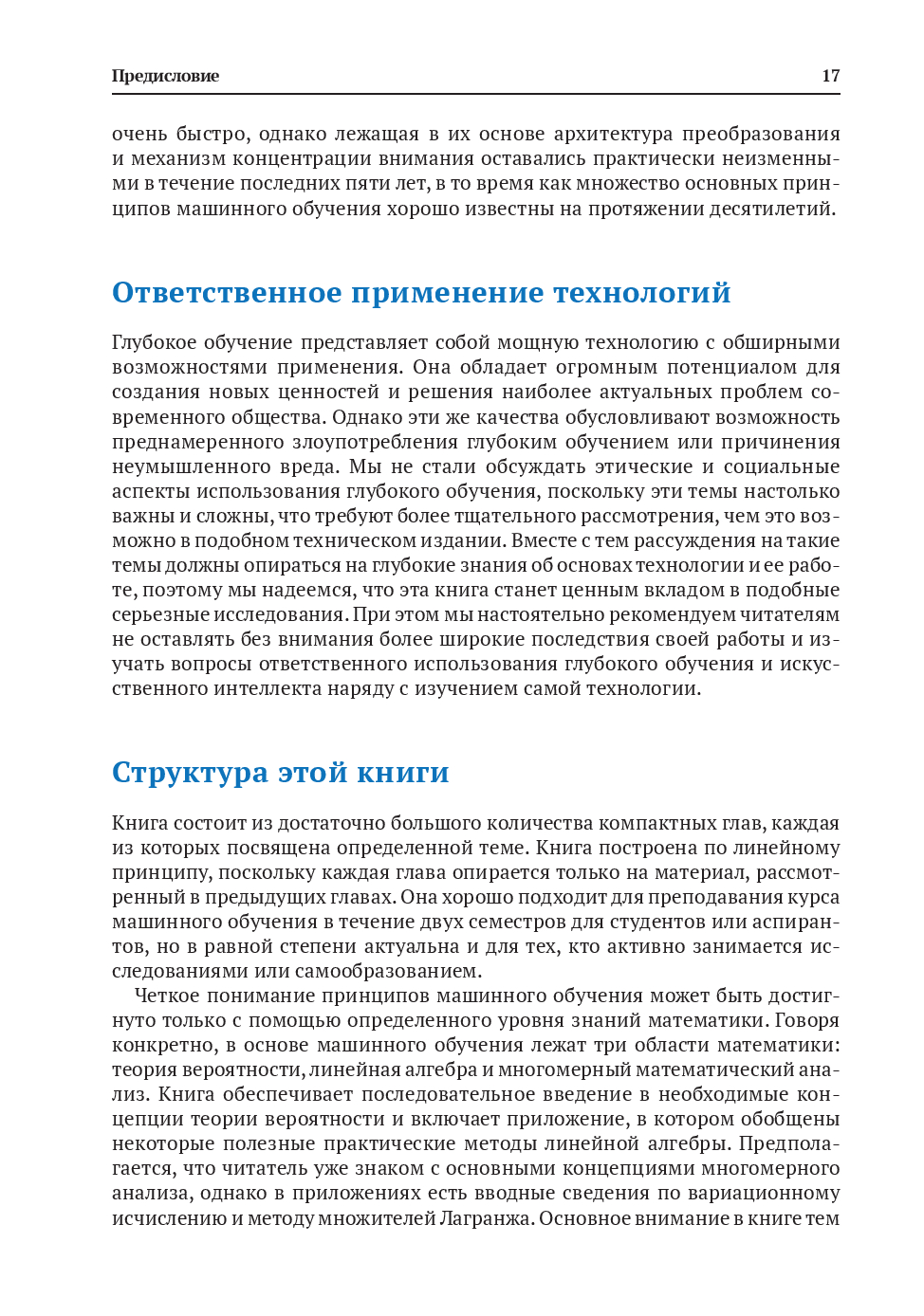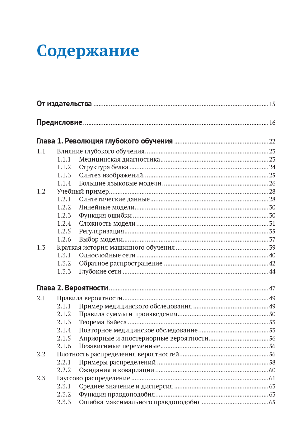 Книга предлагает исчерпывающее описание фундаментальных идей, лежащих в основе глубокого обучения и выдержавших испытание временем. Для глубокого понимания принципов машинного обучения требуется определенная математическая подготовка, поэтому в книгу включено основательное введение в теорию вероятностей.