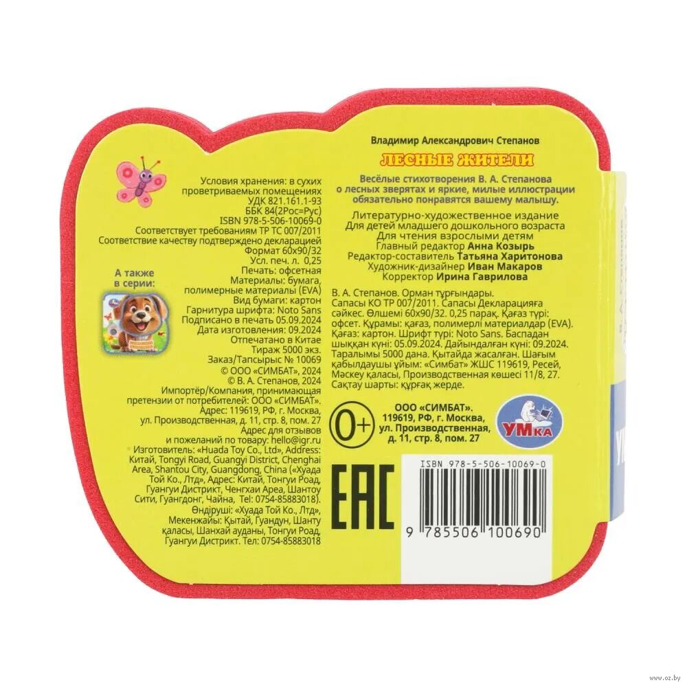 Оригинально оформленная книжка с фигурными яркими страницами и мягким обрамлением обязательно заинтересует маленького любознайку. Ребенок с удовольствием будет играть с миниатюрной красочной книжкой-малышкой и, конечно же, слушать добрые стихи Владимира Степанова, расширяя свои знания об окружающем мире. Благодаря компактному формату издание удобно брать повсюду с собой: оно легко поместится в женскую сумочку, детский рюкзачок или даже в карман одежды!