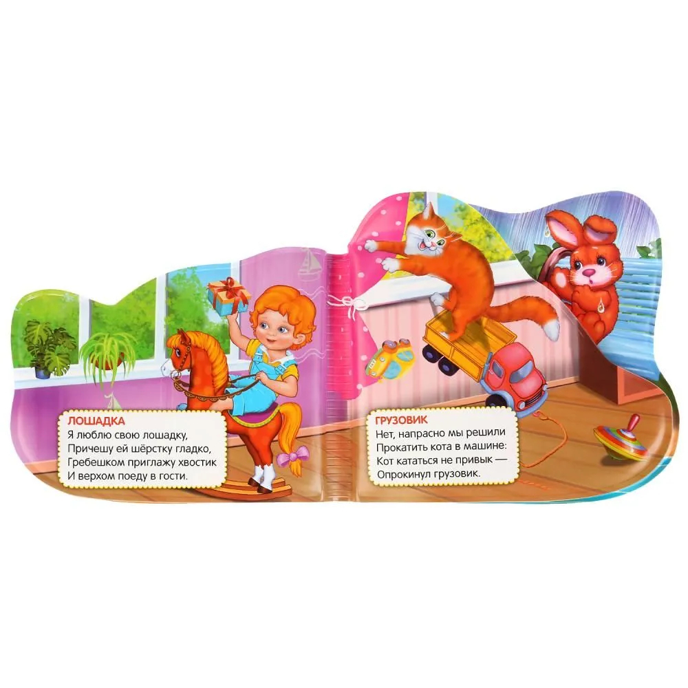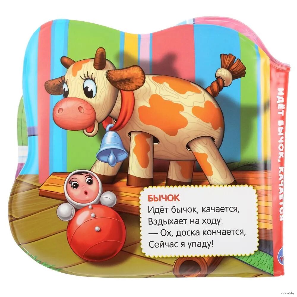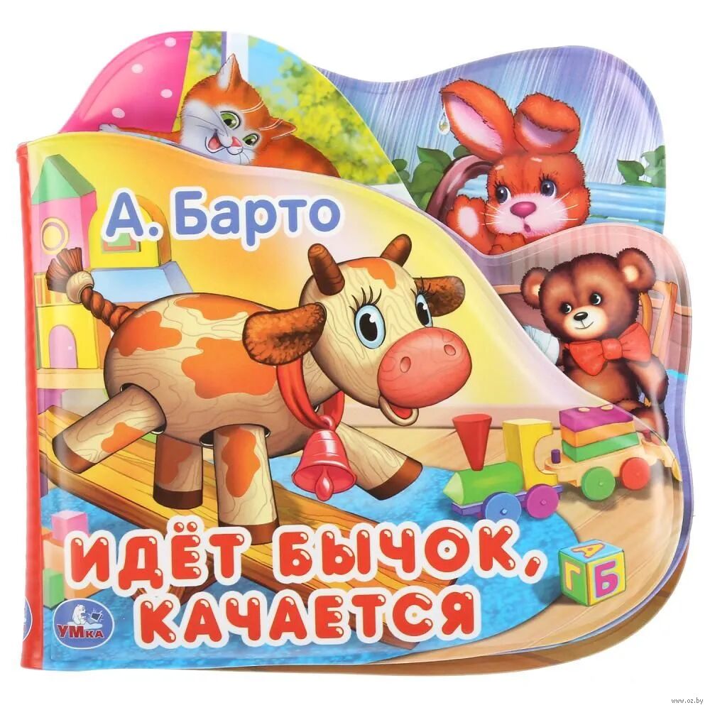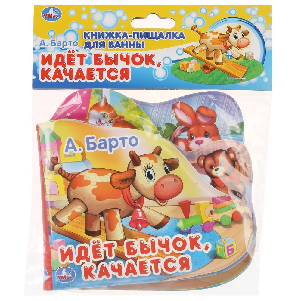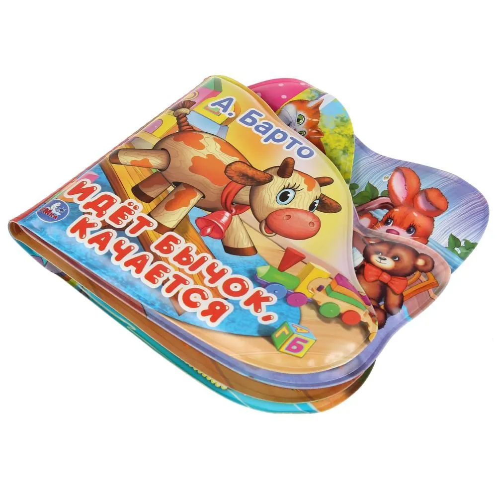 Книга с красочными изображениями героев стихов известной детской поэтессы обязательно заинтересует малыша. Вместе с такой книгой ребёнку будет весело и интересно играть и принимать ванну. Если нажать на страничку, она запищит, чем развеселит маленького непоседу. Фигурные странички удобно и при этом увлекательно листать. Благодаря компактным размерам игрушку удобно брать с собой на прогулку и в поездки.