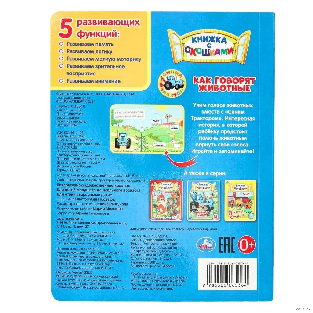 Книжка с окошками "Синий Трактор. Как говорят животные" станет прекрасным обучающим подарком для ребёнка: