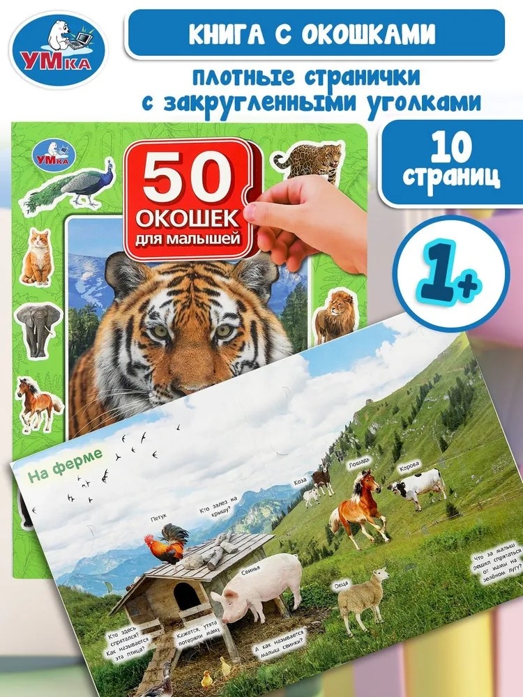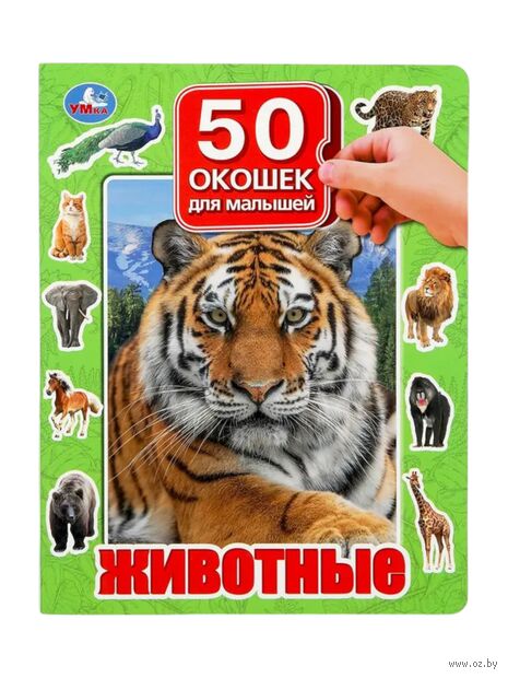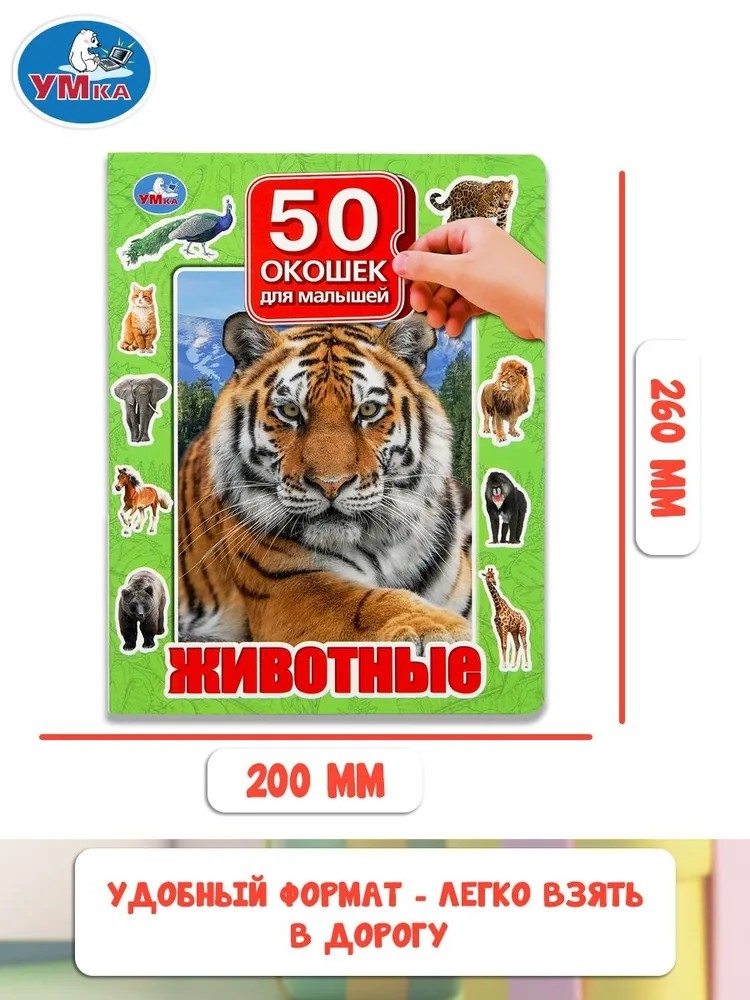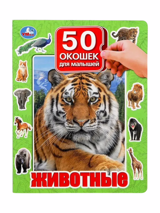 Картонная книга "Животные" из серии "50 окошек для малышей" станет прекрасным подарком для маленького любознайки: