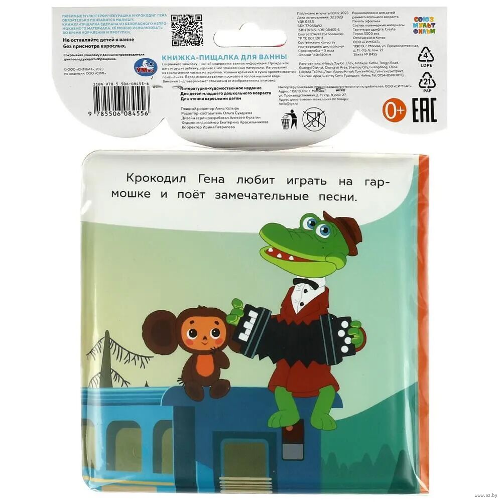 Книга с красочными изображениями персонажей доброго мультфильма студии "Союзмультфильм" обязательно заинтересует малыша. Кроме того, при нажатии на страницу она издает забавный пищащий звук, чем развеселит маленького непоседу. С такой игрушкой ребенку будет весело и интересно принимать ванну, а также ее можно использовать во время кормления или прогулок: непромокаемый материал легко моется.