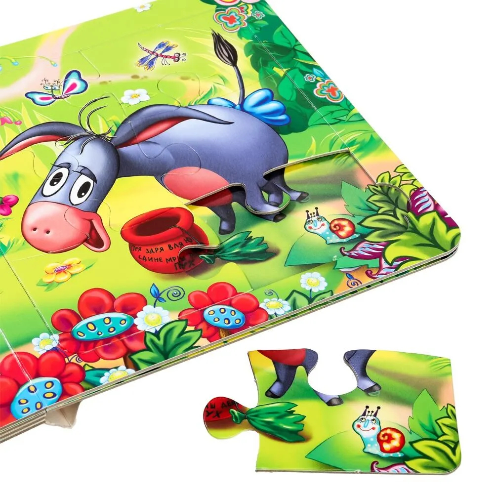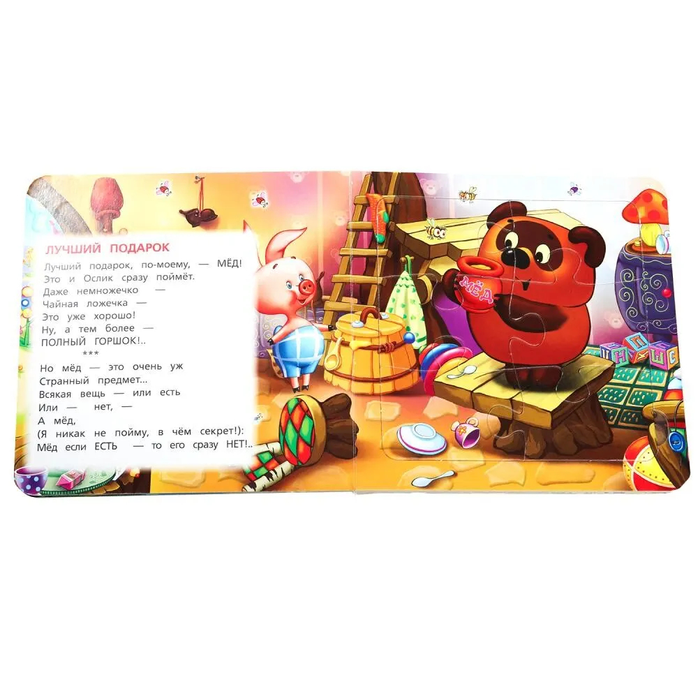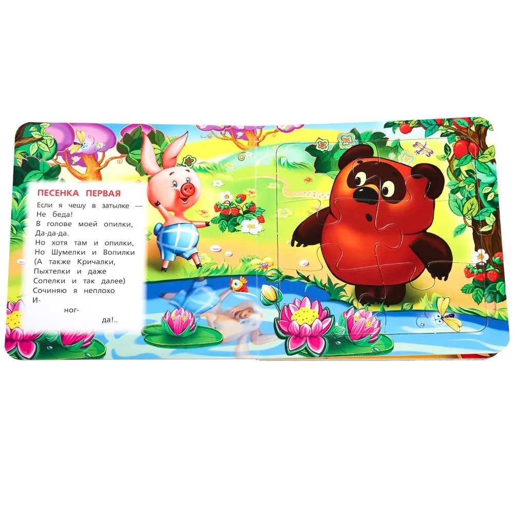 Данная книга выполняет сразу 2 функции: это и книга для чтения, и игра в пазлы. На каждом развороте малыша ждут тексты песенок, которые можно петь вместе с родителями, а также яркий пазл из 6 деталей с изображением героев любимого мультфильма. Книжка изготовлена из плотного картона, поэтому мамы могут не опасаться, что ребенок порвет странички. Благодаря удобному формату книгу можно взять с собой в дорогу.
