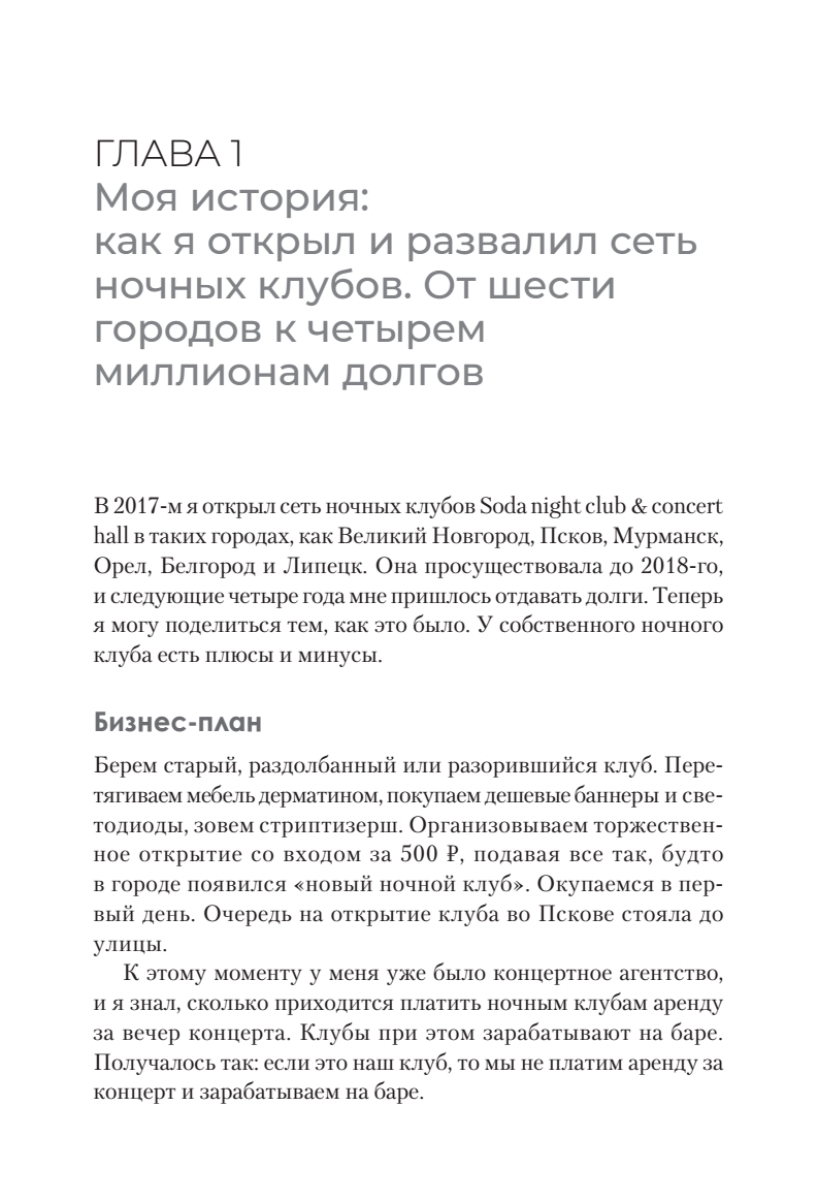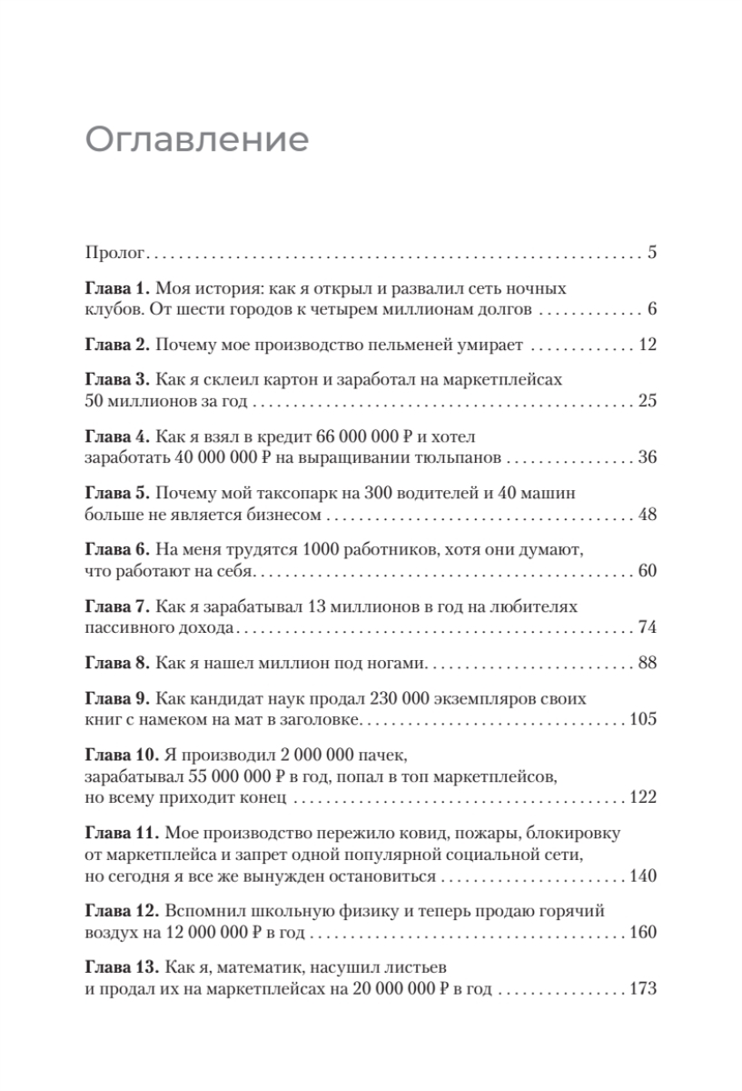 Эта книга – настоящий мастрид для тех, кто хочет запустить свой проект, но боится провала. Здесь собраны реальные истории предпринимателей, которые прошли через взлёты и падения: от открытия ночных клубов и производства полуфабрикатов до выращивания тюльпанов и продажи декоративного камня.