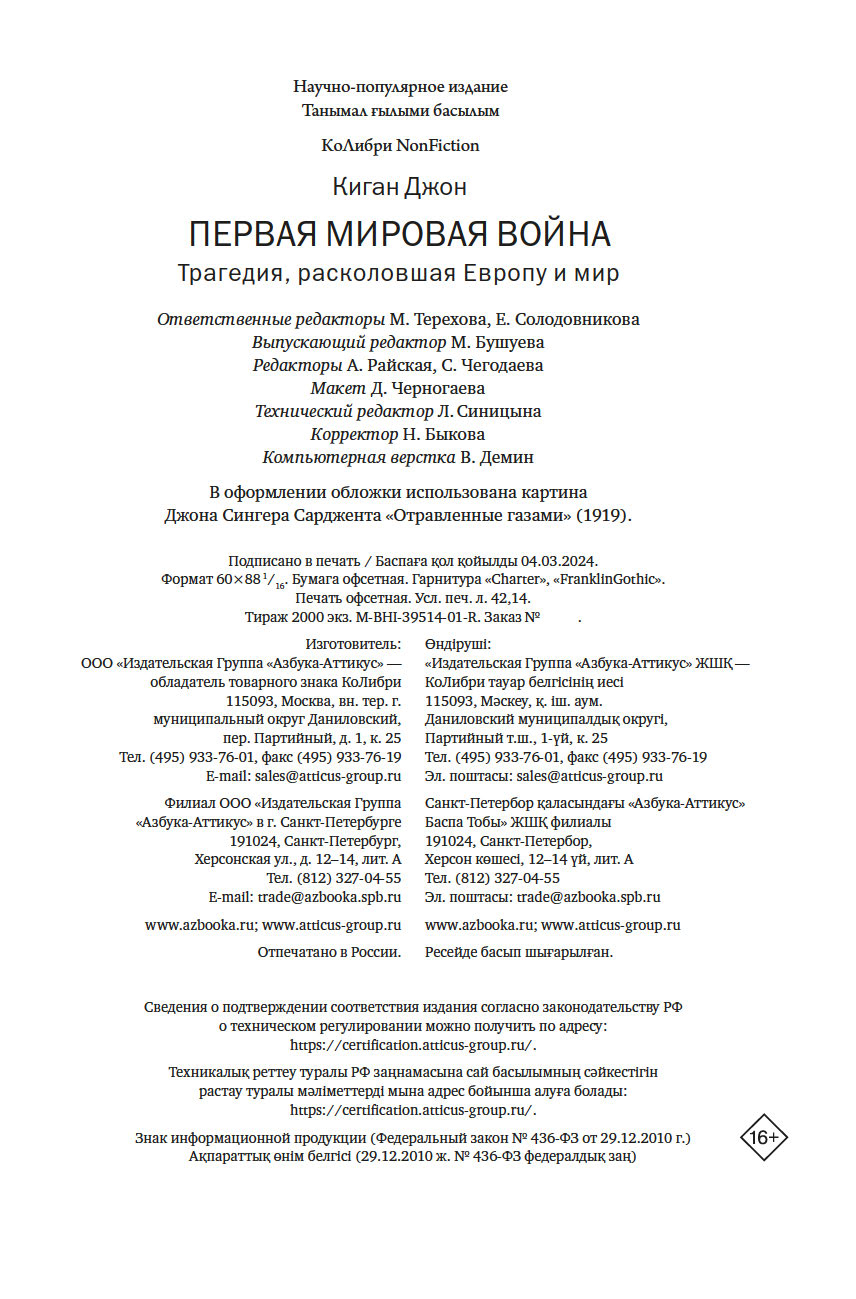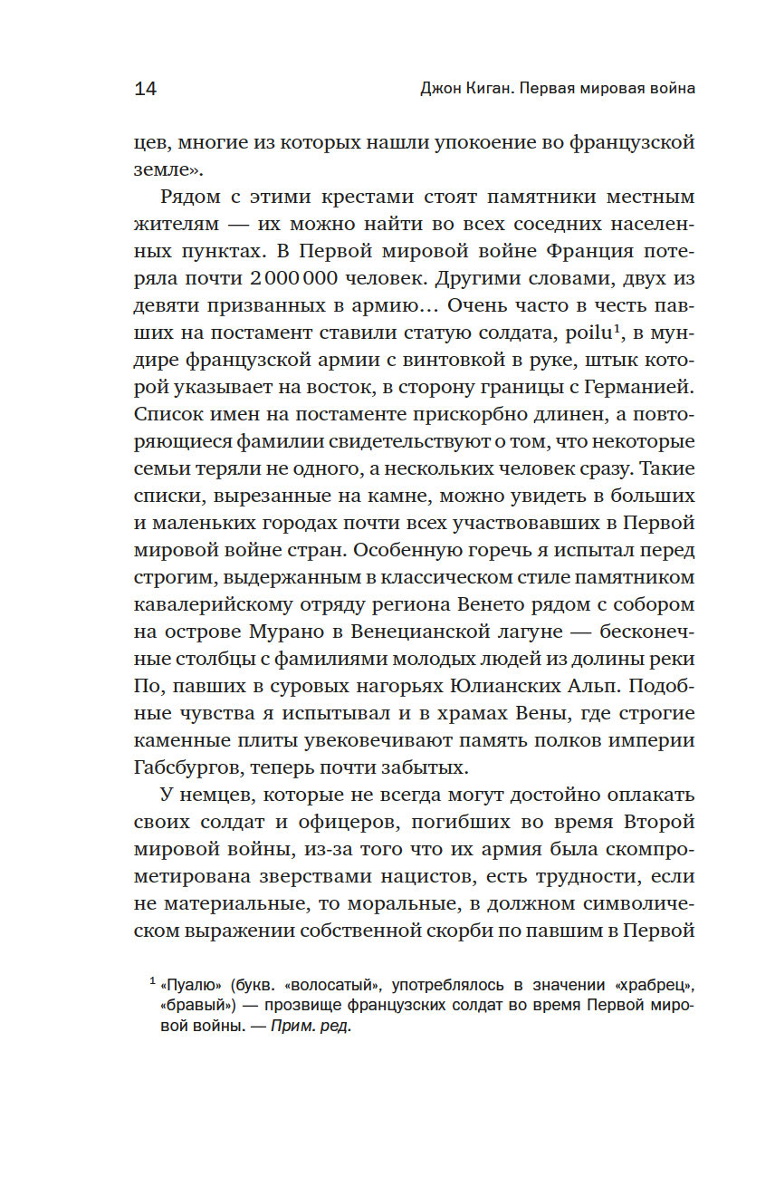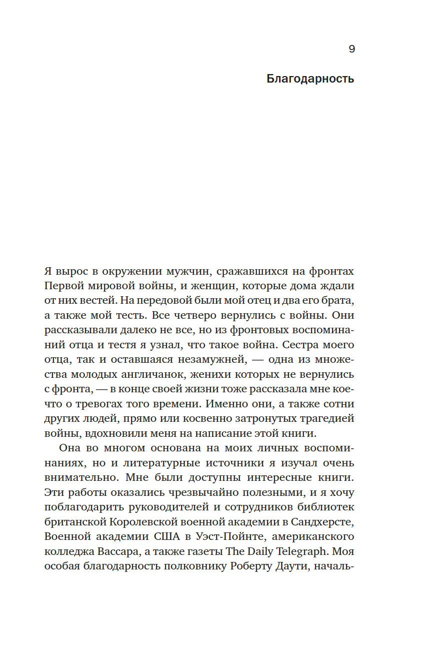 Летом 1914 года в Сараево сербский студент Гаврило Принцип убил наследника австро-венгерского престола Франца Фердинанда. Локальный конфликт на Балканах перерос в Великую войну, которая унесла миллионы жизней, разрушила империи и привела к политическому хаосу, повлекшему за собой Вторую мировую войну. Химическое оружие, изнуряющие позиционные бои, этнические чистки – все это Первая мировая война. Она навсегда изменила мир, при этом никто не вышел из войны победителем. Так закончился "долгий XIX" и начался "короткий ХХ" век – эпоха диктатур, тотальных войн и геноцидов. Британский историк Джон Киган создает масштабное полотно, в котором военно-политический анализ переплетается с личными историями.