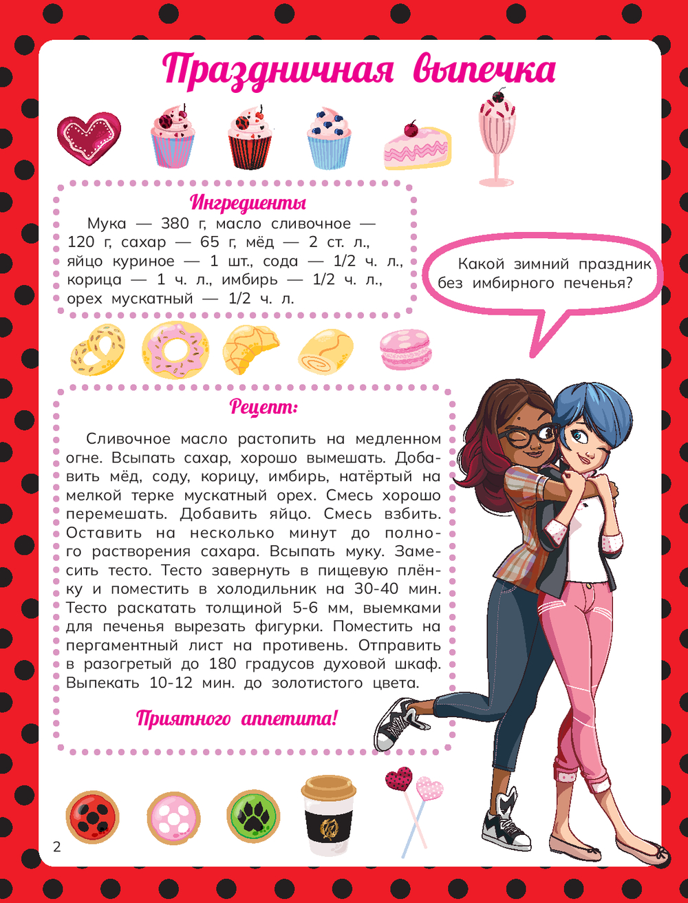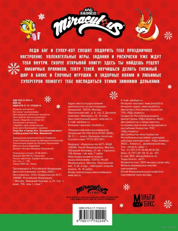 Леди Баг и Супер-Кот спешат подарить тебе праздничное настроение. Увлекательные игры, задания и раскраски уже ждут тебя внутри. Скорее открывай книгу! Здесь ты найдешь рецепт имбирных пряников, театр теней, научишься делать снежный шар в банке и ёлочные игрушки. А задорные квами и любимые супергерои помогут тебе насладиться этими зимними деньками.