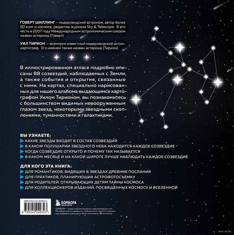 Эта уникальная иллюстрированная книга приглашает вас в путешествие среди 88 созвездий. Созданная трудами двух мастеров: астронома и популяризатора науки Говерта Шиллинга и картографа Уила Тириона, чьи звёздные карты стали эталоном точности, она научит вас легко находить и распознавать созвездия в любом полушарии. Вы не только запомните расположение звезд, но начнете замечать, как меняется картина ночного неба в зависимости от сезона и вашего местоположения.