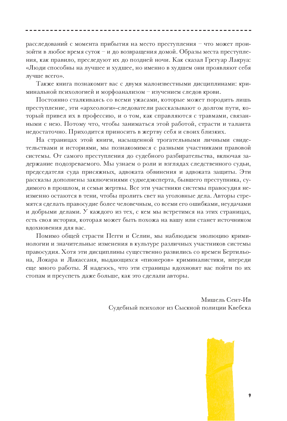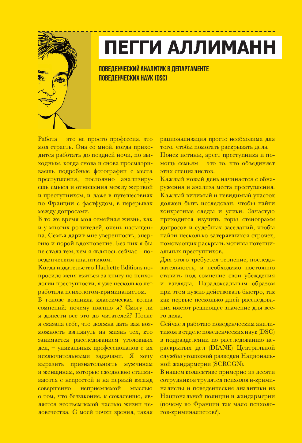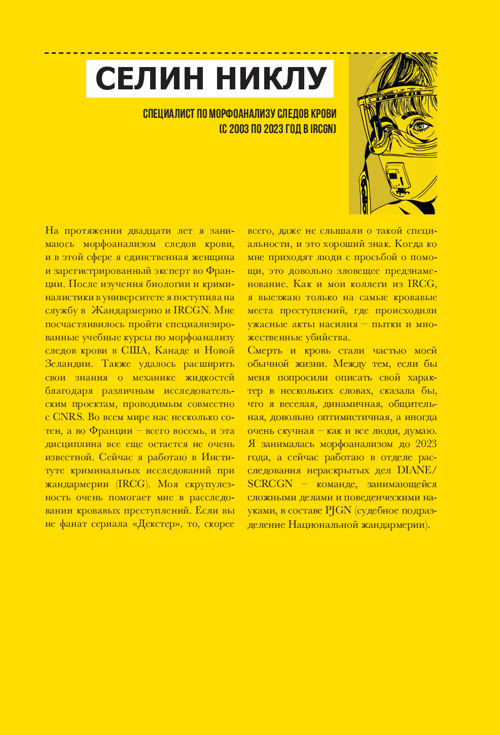 В этой книге нет приглаженных версий – только суровая правда о том, как на самом деле находят улики в грязном белье и на залитой кровью кухне, вытаскивают истину из лживых показаний и выносят решающий приговор в жизни убийцы и жертвы. Вы узнаете, как проходят будни в сфере криминологии и психологии, побываете на месте морфоаналитика, криминалиста, следователя, судьи и других профессионалов. Помимо интересных фактов об уникальных инструментах и методах работы, на страницах книги представлены личные истории и интервью с жуткими и порой шокирующими подробностями от лица специалистов в этой сфере.