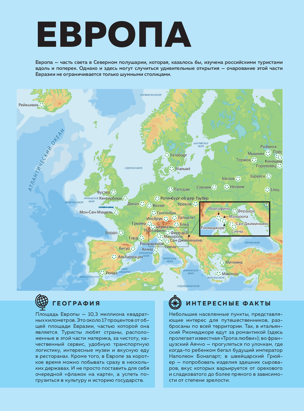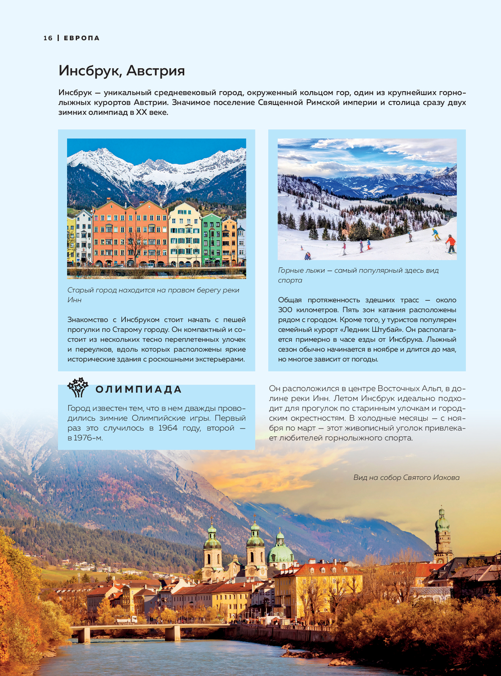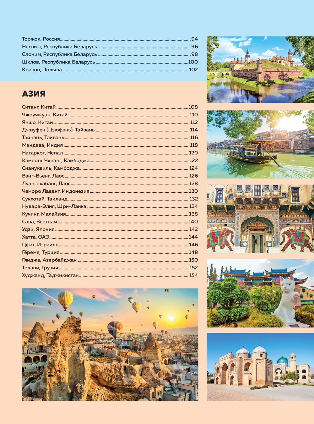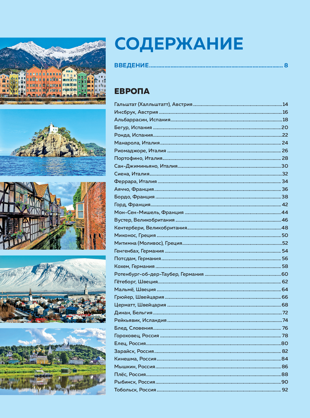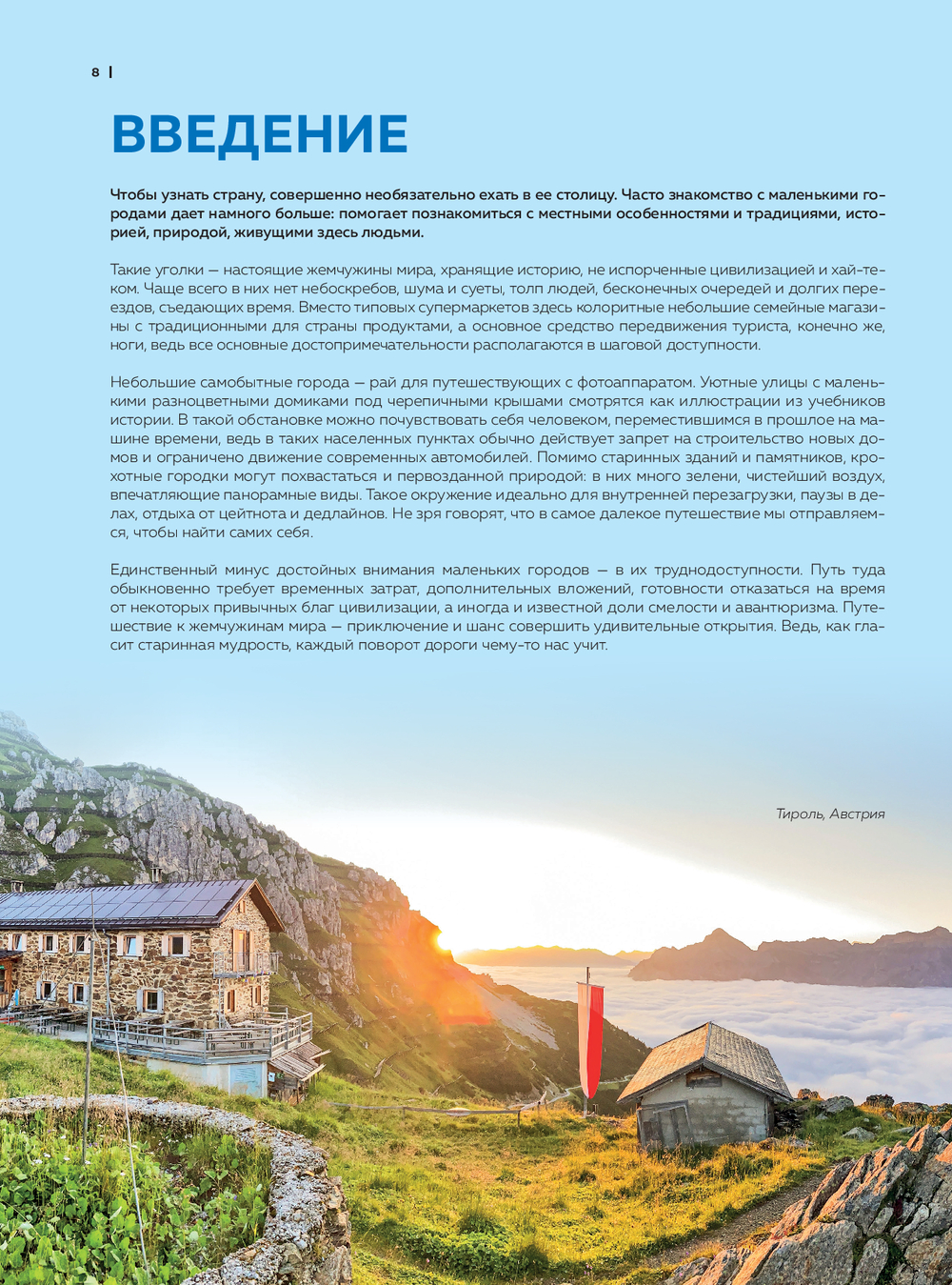 Открыв эту книгу, вы прогуляетесь по висящему над ущельем мосту в Ронде, растворитесь в медовом свете заката Сиены, найдете тихие дворики Кракова, искупаетесь в горячих источниках Баньоса, откроете белоснежный покой гор Инсбрука и Церматта, а также увидите китов в Ситке и знаковые места империи инков в Куско.