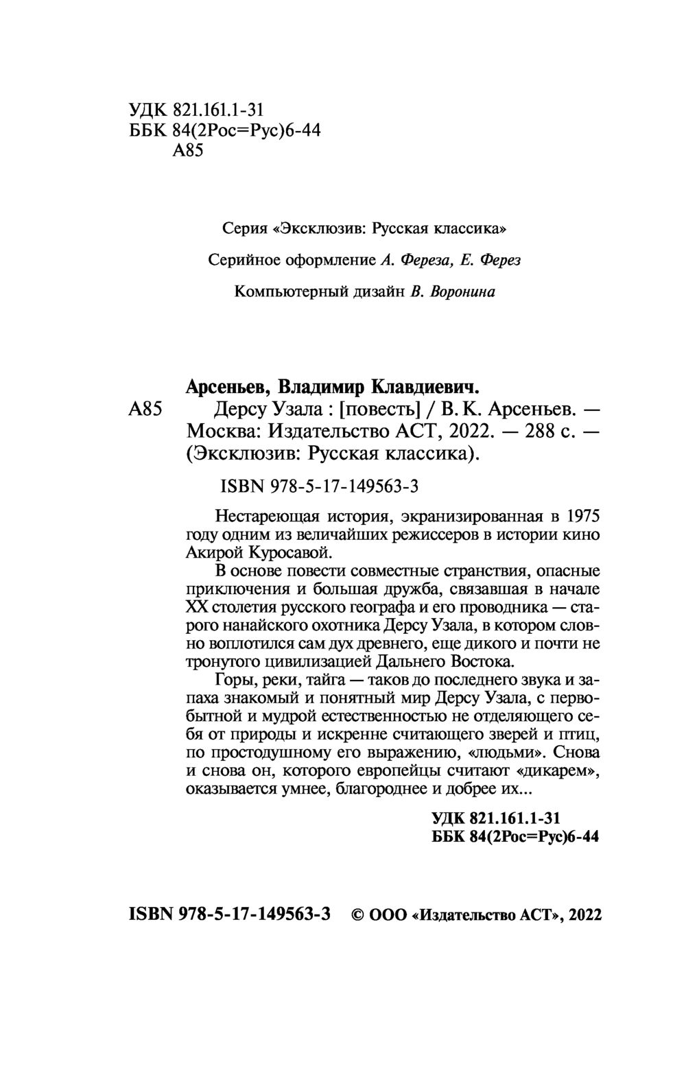 В основе повести совместные странствия, опасные приключения и большая дружба, связавшая в начале ХХ столетия русского географа и его проводника – старого нанайского охотника Дерсу Узала, в котором словно воплотился сам дух древнего, еще дикого и почти нетронутого цивилизацией Дальнего Востока.