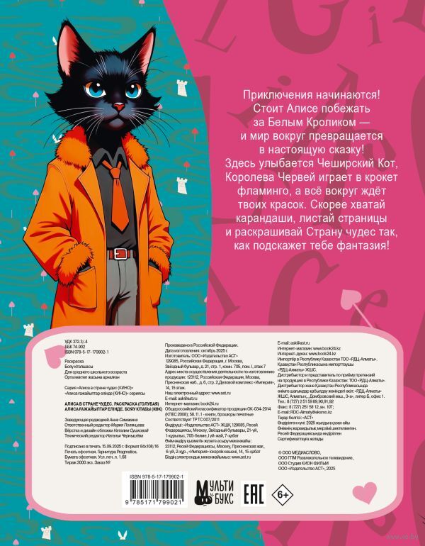 Приключения начинаются! Стоит Алисе побежать за Белым Кроликом – и мир вокруг превращается в настоящую сказку! Здесь улыбается Чеширский Кот, Королева Червей играет в крокет фламинго, а всё вокруг ждёт твоих красок. Скорее хватай карандаши, листай страницы и раскрашивай Страну чудес так, как подскажет тебе фантазия!