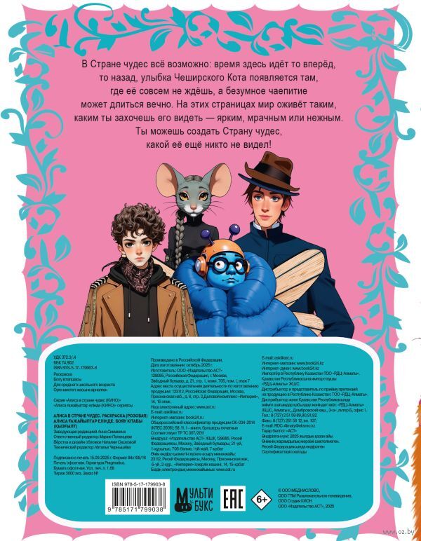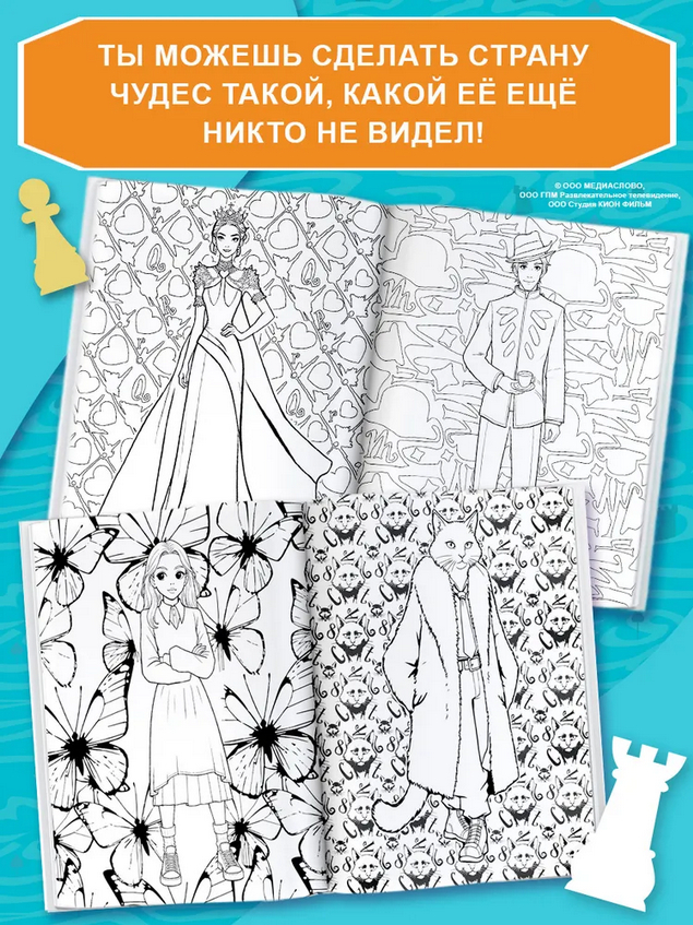 Приключения начинаются! Стоит Алисе побежать за Белым Кроликом – и мир вокруг превращается в настоящую сказку! Здесь улыбается Чеширский Кот, Королева Червей играет в крокет фламинго, а всё вокруг ждёт твоих красок. Скорее хватай карандаши, листай страницы и раскрашивай Страну чудес так, как подскажет тебе фантазия!