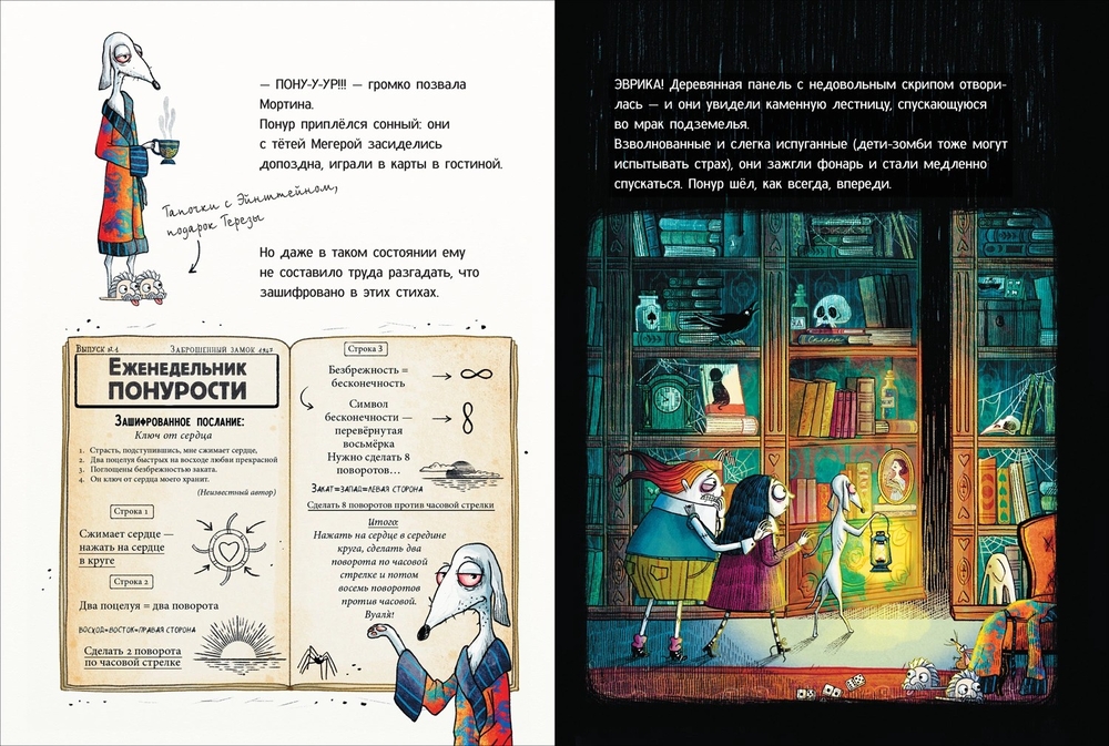 Вот уже больше ста лет Мортина живет в Заброшенном замке и, кажется, знает в нем каждый уголок. Вдруг совершенно случайно она обнаруживает в библиотеке тайный ход, который ведет к запертой двери. Что же за ней? И куда пропала тетушка Язва?